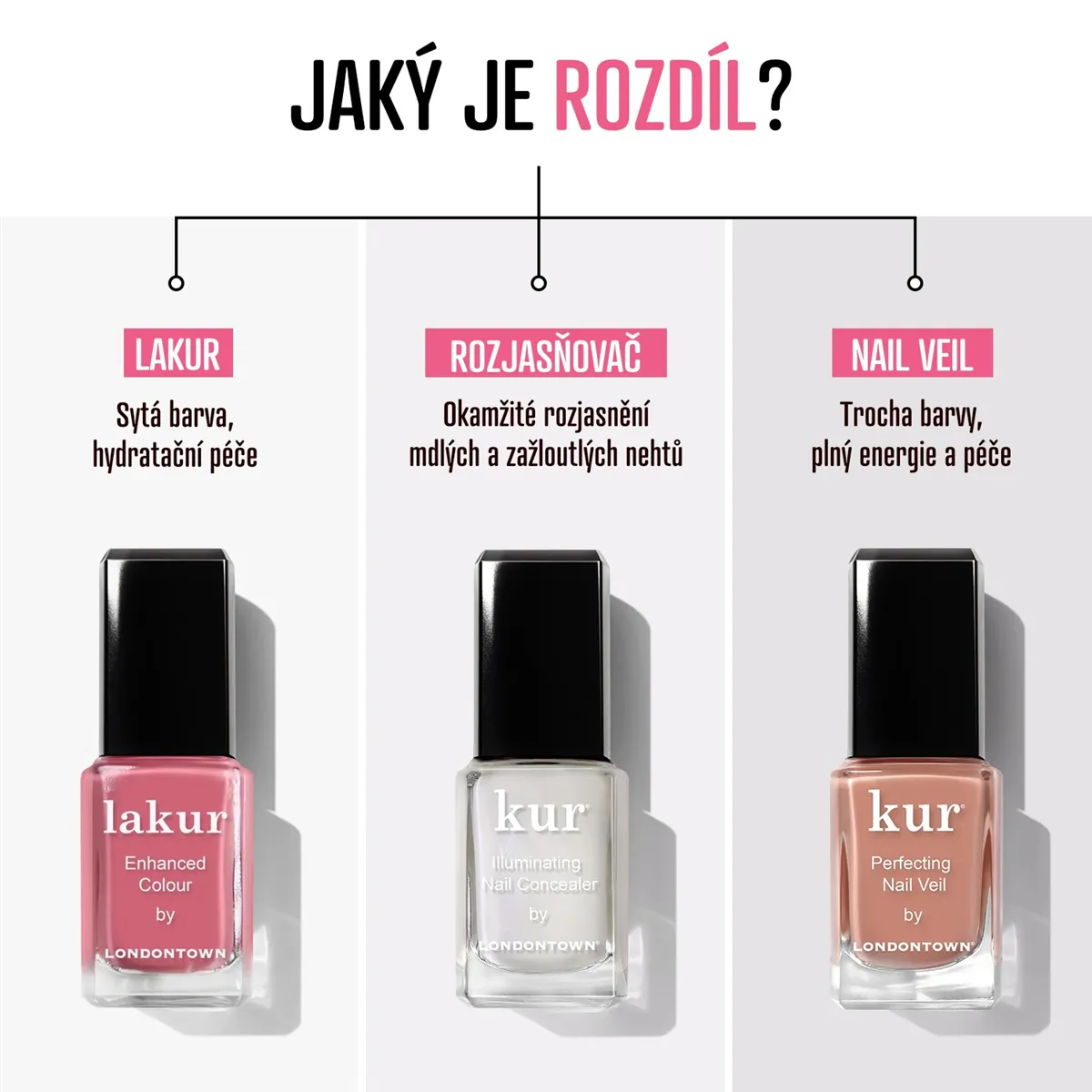 Tónovaný hydratačný a spevňujúci lak Nail Veil prináša najjednoduchšiu manikúru, akú si viete predstaviť. Je to výživný závoj. Má všetky úžasné vlastnosti starostlivosti Kur vrátane výživného Florium Complex®. Neutrálne odtiene zdokonaľujúcich závojov sú veľmi elegantné a univerzálne. Londontown v nich ubral pigment, aby zvýšil pestiace účinky. Ultra-jemné odtiene okamžite zdokonaľujú a vylepšujú prirodzený vzhľad nechtov, zatiaľ čo zmes aktívnych látok ich posilňuje a hydratuje. Stačí naniesť jednu až dve vrstvy, nechať zaschnúť a vyraziť von. Nepotrebujete žiadny podkladový ani vrchny lak (ale môžete ich použiť). Až svoj Perfecting Nail Veil odstránite, nechty budú vyzerať omladenejšie a zdravšie než predtým.