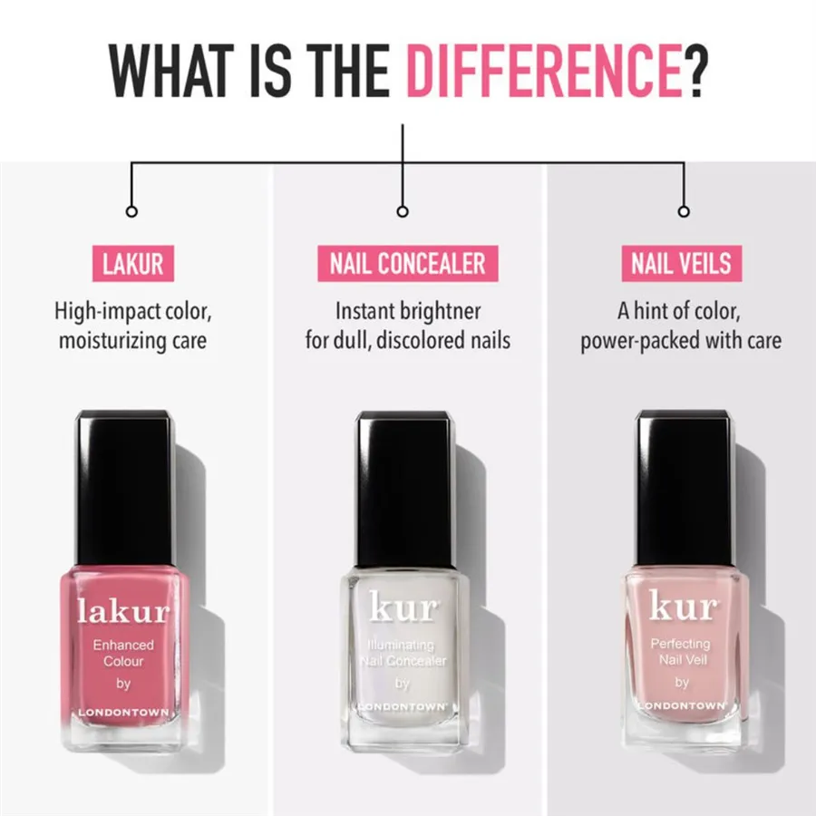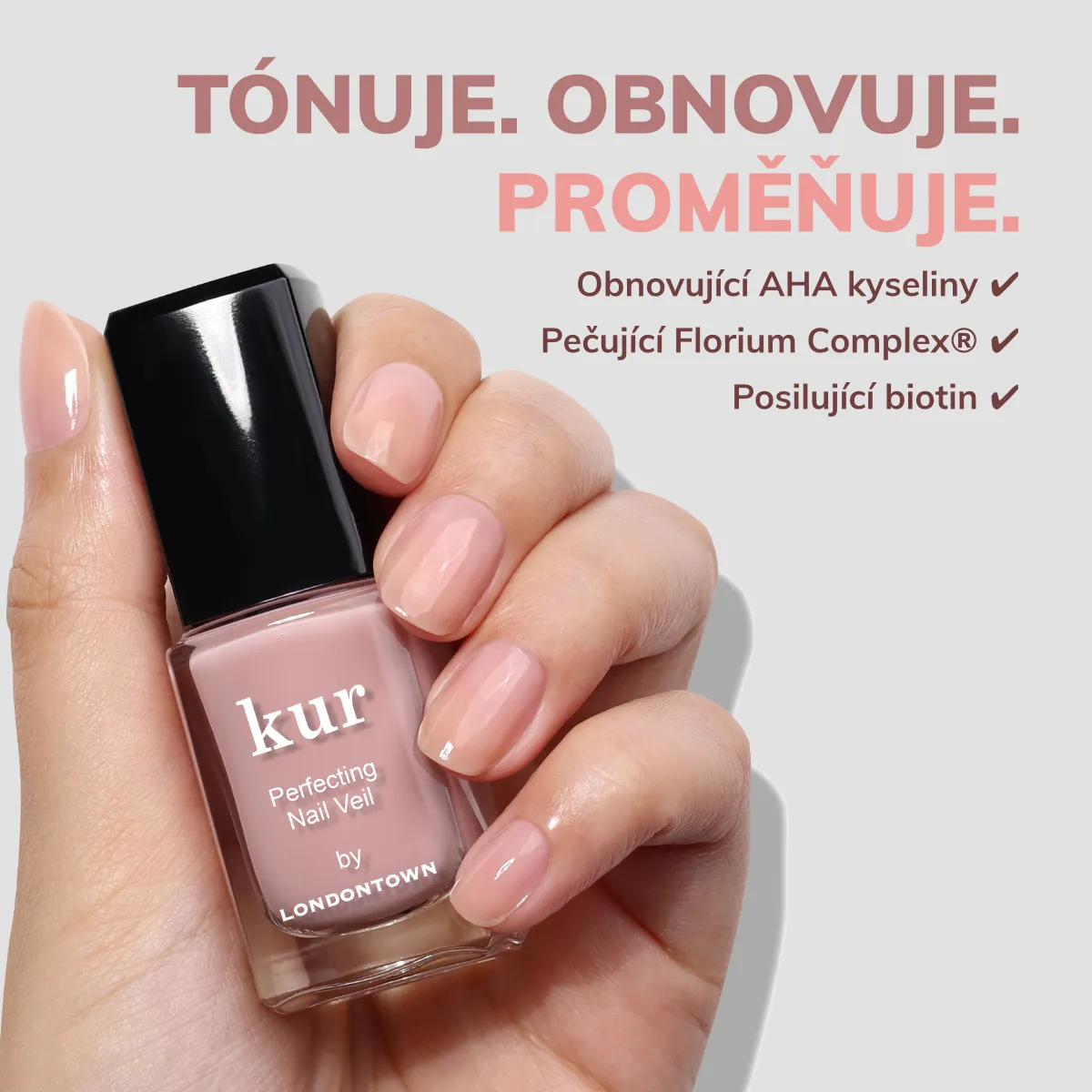 Tónovaný hydratačný a spevňujúci lak Nail Veil prináša najjednoduchšiu manikúru, akú si viete predstaviť. Je to výživný závoj. Má všetky úžasné vlastnosti starostlivosti Kur vrátane výživného Florium Complex®. Neutrálne odtiene zdokonaľujúcich závojov sú veľmi elegantné a univerzálne. Londontown v nich ubral pigment, aby zvýšil pestiace účinky. Ultra-jemné odtiene okamžite zdokonaľujú a vylepšujú prirodzený vzhľad nechtov, zatiaľ čo zmes aktívnych látok ich posilňuje a hydratuje. Stačí naniesť jednu až dve vrstvy, nechať zaschnúť a vyraziť von. Nepotrebujete žiadny podkladový ani vrchny lak (ale môžete ich použiť). Až svoj Perfecting Nail Veil odstránite, nechty budú vyzerať omladenejšie a zdravšie než predtým.