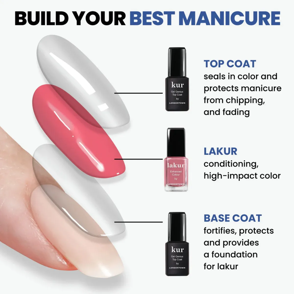 Rad starostlivosti na nechty kur Londontown obsahuje účinné látky, ktoré penetrujú hlboko do nechtov a viditeľne zlepšujú ich rast, ohybnosť a textúru.