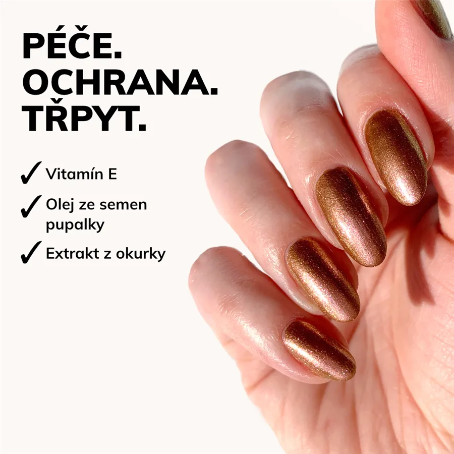 Trblietavý štít v laku na nechty zachytí každý lúč svetla. Starostlivosť a farba v jednom kroku pre dokonalú manikúru za 5 minút. Clean beauty.