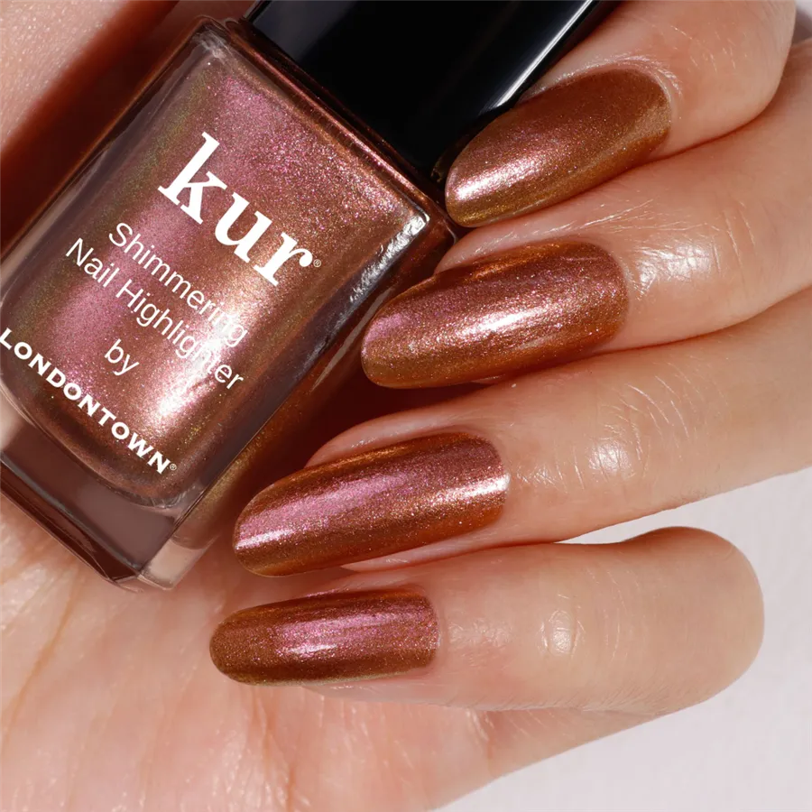 LONDONTOWN kur Shimmering Nail Highlighter Molten lak na nechty rozjasňujúci medený s trblietkami 12 ml