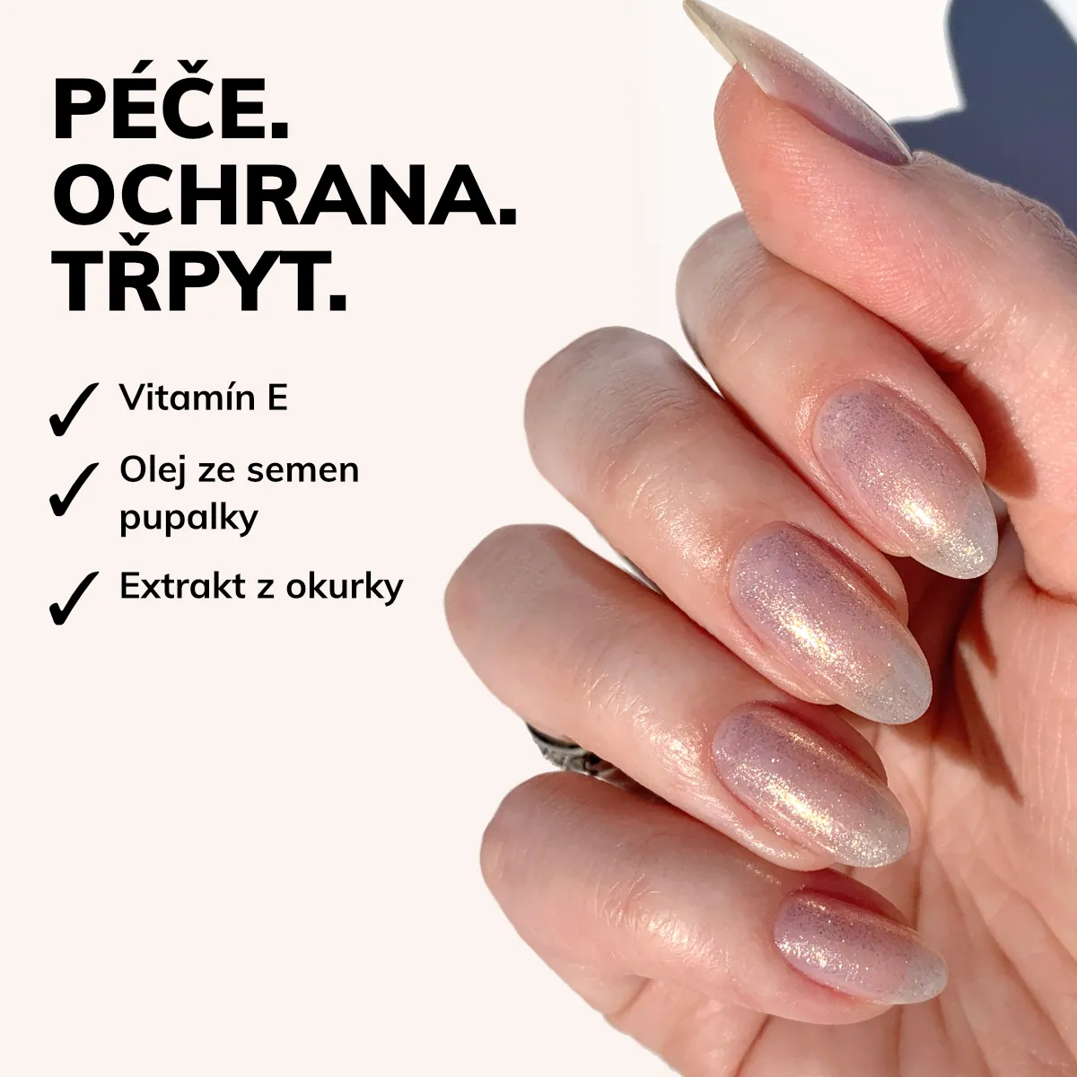 Trblietavý štít v laku na nechty zachytí každý lúč svetla. Starostlivosť a farba v jednom kroku pre dokonalú manikúru za 5 minút. Clean beauty.
