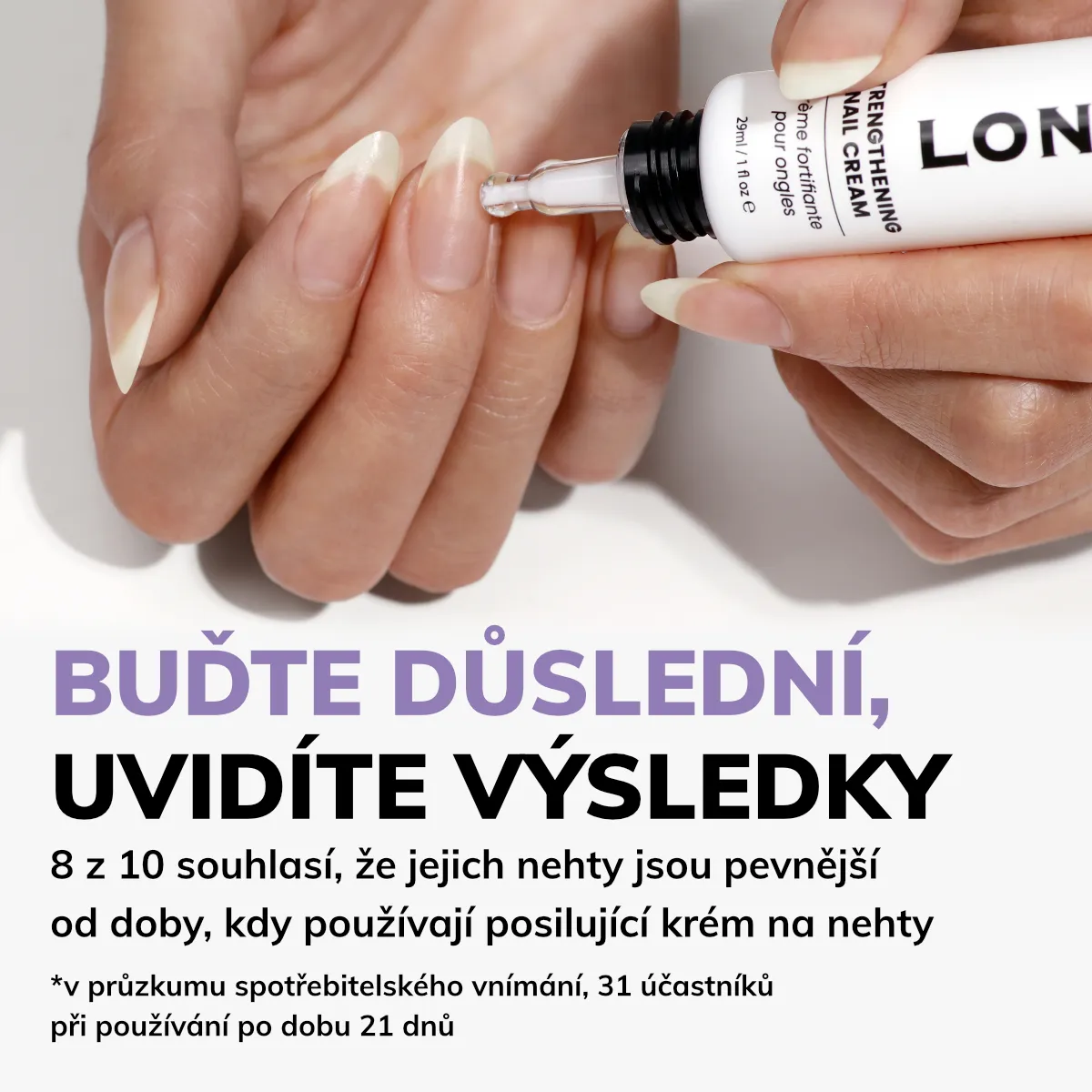 Silový tréning pre vaše nechty! Posilňujúci krém je plný účinných látok, ktoré posilňujú, vyživujú a viditeľne menia slabé nechty na silnejšie.