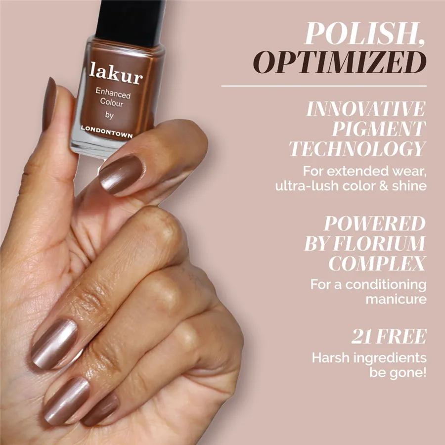Luxusné laky na nechty Londontown lakur vyživujú a skrášľujú zároveň, pritom sú vysoko odolné, rýchlo schnú a majú takmer gélový lesk. Obsahujú Florium Complex®, starostlivo strážený rodinný recept – zmes botanických olejov a extraktov na posilnenie, hydratáciu a regeneráciu nechtov a pokožky. Laky na nechty lakur predstavujú prelomovú kombináciu intenzívnej farby a jedinečnej starostlivosti kur® – výsledok premysleného prístupu, ktorý spája to najlepšie z čistých ingrediencií a účinnej, profesionálnej technológie. Vyberte si clean beauty.