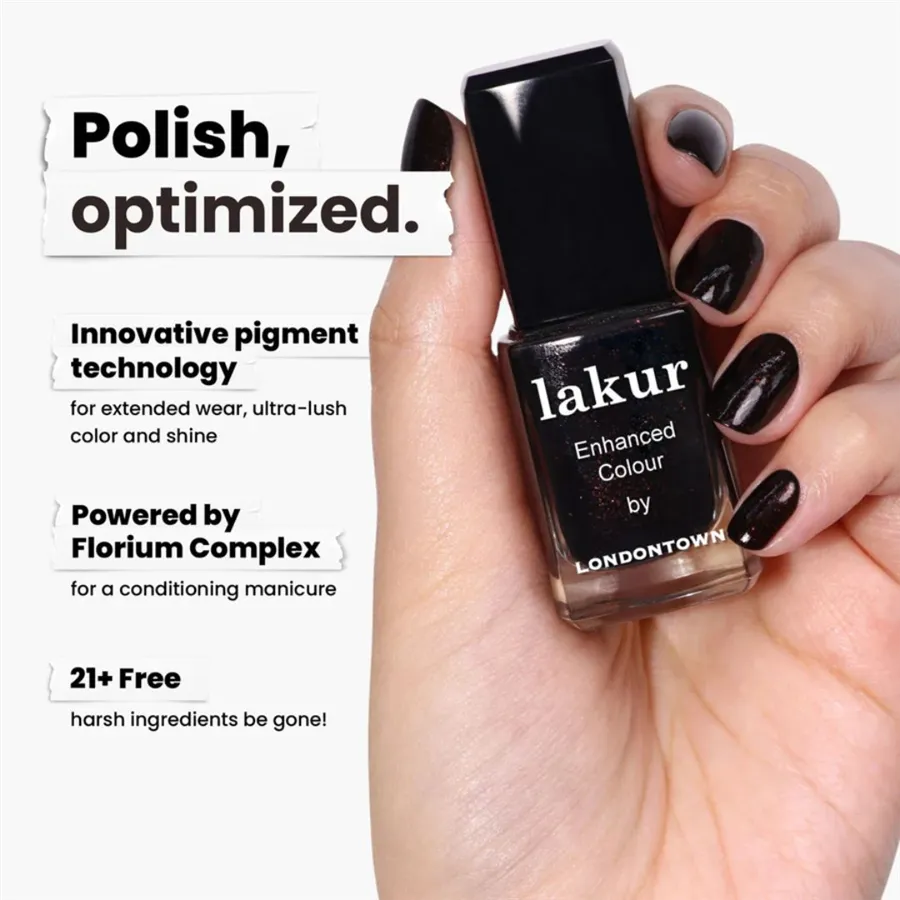 Luxusné laky na nechty Londontown lakur vyživujú a skrášľujú zároveň, pritom sú vysoko odolné, rýchlo schnú a majú takmer gélový lesk. Obsahujú Florium Complex®, starostlivo strážený rodinný recept – zmes botanických olejov a extraktov na posilnenie, hydratáciu a regeneráciu nechtov a pokožky. Laky na nechty lakur predstavujú prelomovú kombináciu intenzívnej farby a jedinečnej starostlivosti kur® – výsledok premysleného prístupu, ktorý spája to najlepšie z čistých ingrediencií a účinnej, profesionálnej technológie. Vyberte si clean beauty.