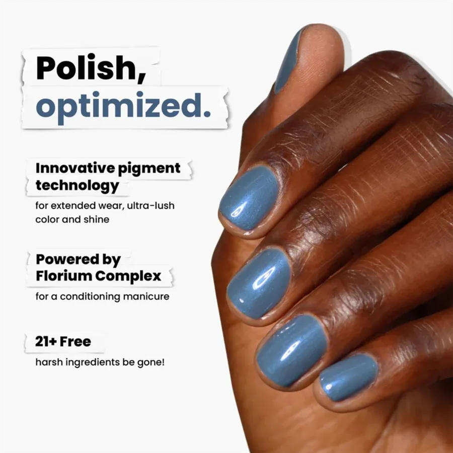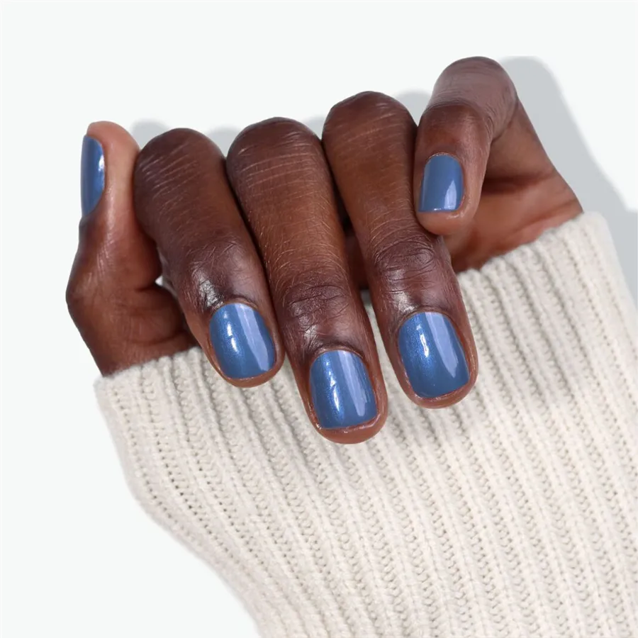 Chrómový lak na nechty v športovej modrej farbe je inšpirovaný zimnými športmi. Zo svahu priamo do strediska. Vyskúšajte clean beauty.