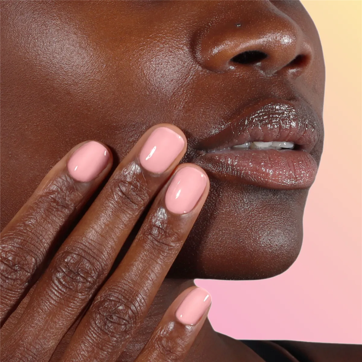 Vytvorte si manikúru pre dobrú náladu v hrejivom, priesvitnom ružovom odtieni inšpirovanom medvedíkmi Care Bears. Clean beauty.