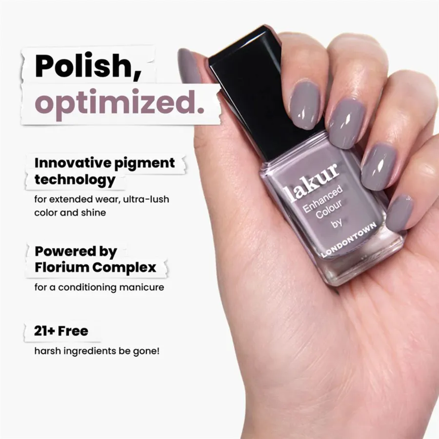 Luxusné laky na nechty Londontown lakur vyživujú a skrášľujú zároveň, pritom sú vysoko odolné, rýchlo schnú a majú takmer gélový lesk. Obsahujú Florium Complex®, starostlivo strážený rodinný recept – zmes botanických olejov a extraktov na posilnenie, hydratáciu a regeneráciu nechtov a pokožky. Laky na nechty lakur predstavujú prelomovú kombináciu intenzívnej farby a jedinečnej starostlivosti kur® – výsledok premysleného prístupu, ktorý spája to najlepšie z čistých ingrediencií a účinnej, profesionálnej technológie. Vyberte si clean beauty.