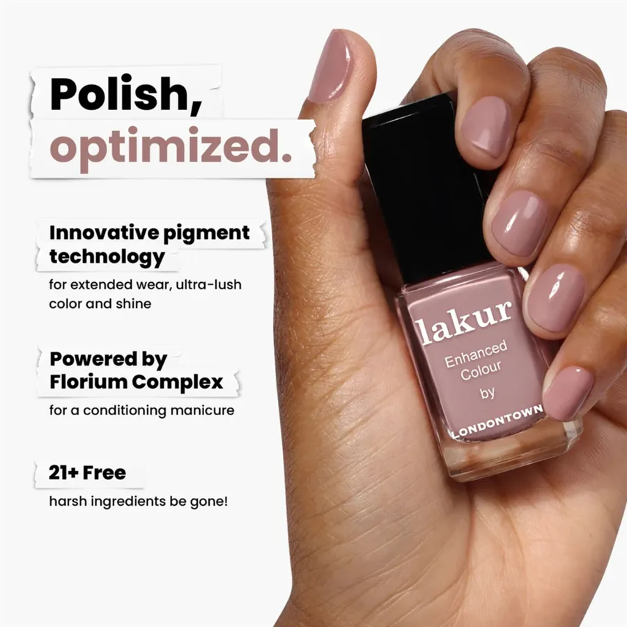 Luxusné laky na nechty Londontown lakur vyživujú a skrášľujú zároveň, pritom sú vysoko odolné, rýchlo schnú a majú takmer gélový lesk. Obsahujú Florium Complex®, starostlivo strážený rodinný recept – zmes botanických olejov a extraktov na posilnenie, hydratáciu a regeneráciu nechtov a pokožky. Laky na nechty lakur predstavujú prelomovú kombináciu intenzívnej farby a jedinečnej starostlivosti kur® – výsledok premysleného prístupu, ktorý spája to najlepšie z čistých ingrediencií a účinnej, profesionálnej technológie. Vyberte si clean beauty.