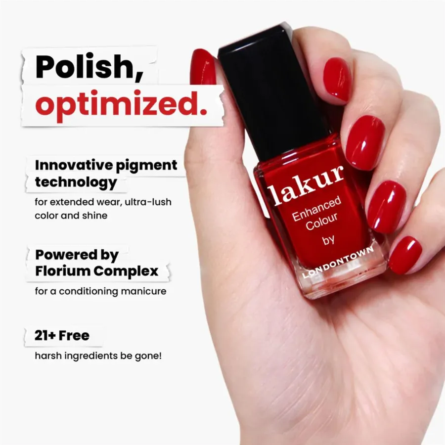 Luxusné laky na nechty Londontown lakur vyživujú a skrášľujú zároveň, pritom sú vysoko odolné, rýchlo schnú a majú takmer gélový lesk. Obsahujú Florium Complex®, starostlivo strážený rodinný recept – zmes botanických olejov a extraktov na posilnenie, hydratáciu a regeneráciu nechtov a pokožky. Laky na nechty lakur predstavujú prelomovú kombináciu intenzívnej farby a jedinečnej starostlivosti kur® – výsledok premysleného prístupu, ktorý spája to najlepšie z čistých ingrediencií a účinnej, profesionálnej technológie. Vyberte si clean beauty.