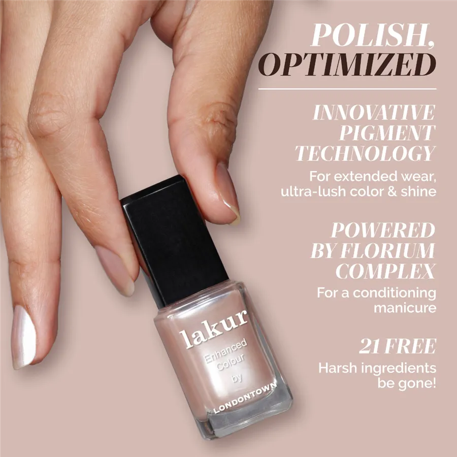 Luxusné laky na nechty Londontown lakur vyživujú a skrášľujú zároveň, pritom sú vysoko odolné, rýchlo schnú a majú takmer gélový lesk. Obsahujú Florium Complex®, starostlivo strážený rodinný recept – zmes botanických olejov a extraktov na posilnenie, hydratáciu a regeneráciu nechtov a pokožky. Laky na nechty lakur predstavujú prelomovú kombináciu intenzívnej farby a jedinečnej starostlivosti kur® – výsledok premysleného prístupu, ktorý spája to najlepšie z čistých ingrediencií a účinnej, profesionálnej technológie. Vyberte si clean beauty.