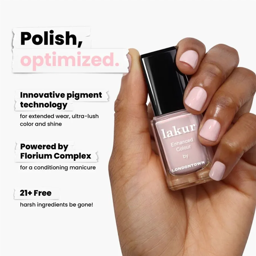 Luxusné laky na nechty Londontown lakur vyživujú a skrášľujú zároveň, pritom sú vysoko odolné, rýchlo schnú a majú takmer gélový lesk. Obsahujú Florium Complex®, starostlivo strážený rodinný recept – zmes botanických olejov a extraktov na posilnenie, hydratáciu a regeneráciu nechtov a pokožky. Laky na nechty lakur predstavujú prelomovú kombináciu intenzívnej farby a jedinečnej starostlivosti kur® – výsledok premysleného prístupu, ktorý spája to najlepšie z čistých ingrediencií a účinnej, profesionálnej technológie. Vyberte si clean beauty.