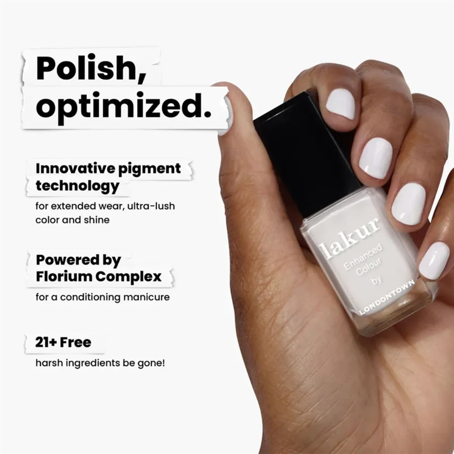Luxusné laky na nechty Londontown lakur vyživujú a skrášľujú zároveň, pritom sú vysoko odolné, rýchlo schnú a majú takmer gélový lesk. Obsahujú Florium Complex®, starostlivo strážený rodinný recept – zmes botanických olejov a extraktov na posilnenie, hydratáciu a regeneráciu nechtov a pokožky. Laky na nechty lakur predstavujú prelomovú kombináciu intenzívnej farby a jedinečnej starostlivosti kur® – výsledok premysleného prístupu, ktorý spája to najlepšie z čistých ingrediencií a účinnej, profesionálnej technológie. Vyberte si clean beauty.