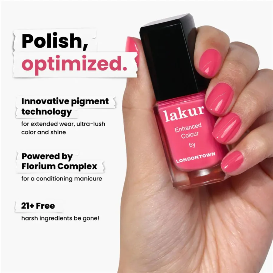 Luxusné laky na nechty Londontown lakur vyživujú a skrášľujú zároveň, pritom sú vysoko odolné, rýchlo schnú a majú takmer gélový lesk. Obsahujú Florium Complex®, starostlivo strážený rodinný recept – zmes botanických olejov a extraktov na posilnenie, hydratáciu a regeneráciu nechtov a pokožky. Laky na nechty lakur predstavujú prelomovú kombináciu intenzívnej farby a jedinečnej starostlivosti kur® – výsledok premysleného prístupu, ktorý spája to najlepšie z čistých ingrediencií a účinnej, profesionálnej technológie. Vyberte si clean beauty.