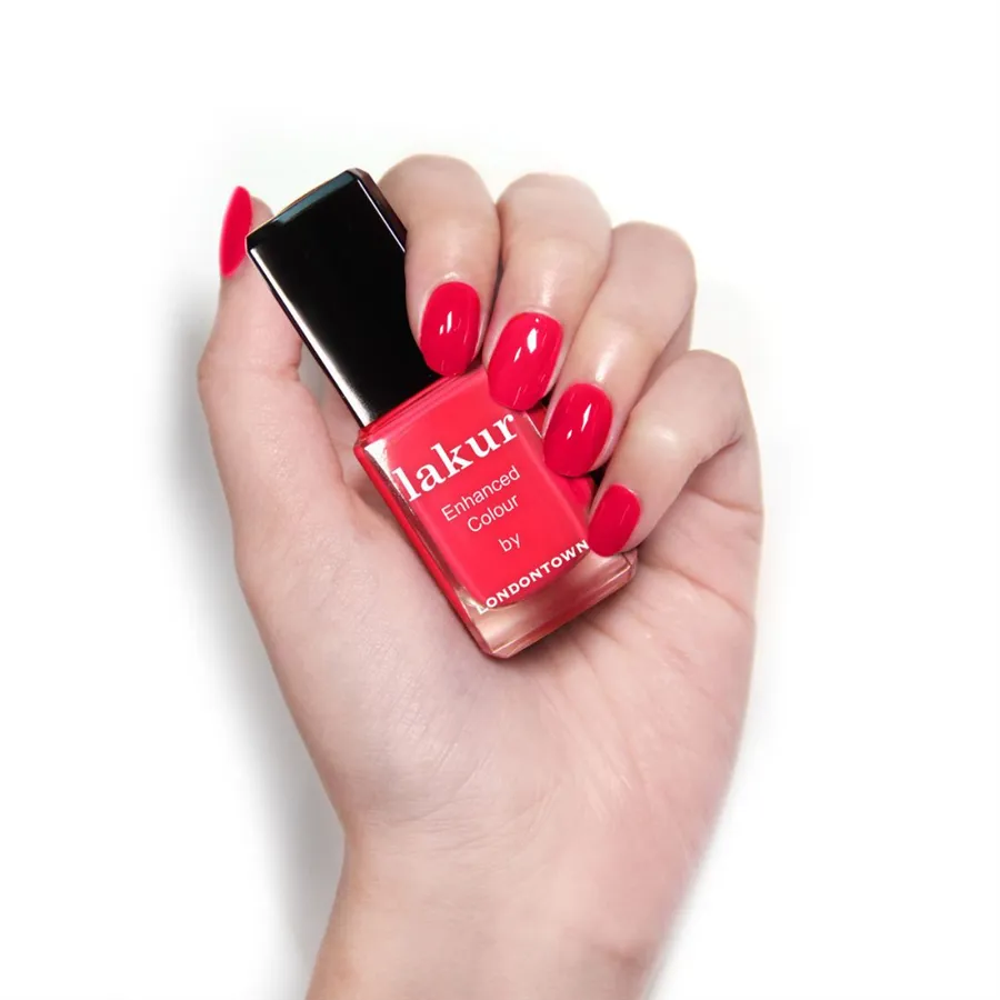 Zavolaj mi, zavolaj! Perfektná kombinácia červenej a ružovej kričí tvoje meno! Lak na nechty Lakur vyživuje nechty, je vegánsky a 21+FREE.