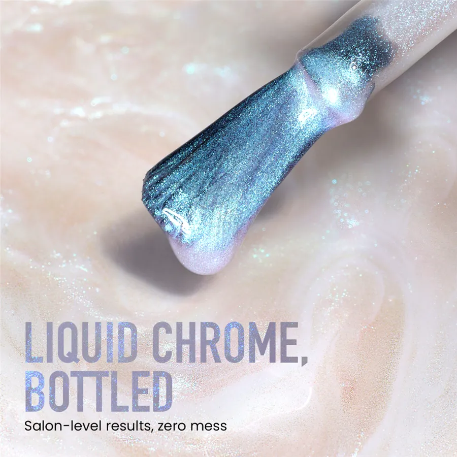 Použitie: Aplikujte na akýkoľvek podkladový lak z radu starostlivosti kur alebo farebný lak na nechty lakur. Jedna vrstva vytvorí efekt chrómovej glazúry, dve vrstvy premenia holé nechty alebo lak na vysoko lesklý kovový finiš. Uzavrite akýmkoľvek top coatom kur.