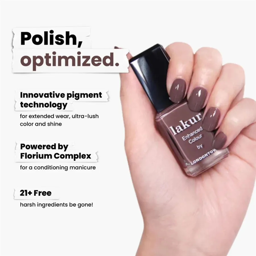Luxusné laky na nechty Londontown lakur vyživujú a skrášľujú zároveň, pritom sú vysoko odolné, rýchlo schnú a majú takmer gélový lesk. Obsahujú Florium Complex®, starostlivo strážený rodinný recept – zmes botanických olejov a extraktov na posilnenie, hydratáciu a regeneráciu nechtov a pokožky. Laky na nechty lakur predstavujú prelomovú kombináciu intenzívnej farby a jedinečnej starostlivosti kur® – výsledok premysleného prístupu, ktorý spája to najlepšie z čistých ingrediencií a účinnej, profesionálnej technológie. Vyberte si clean beauty.