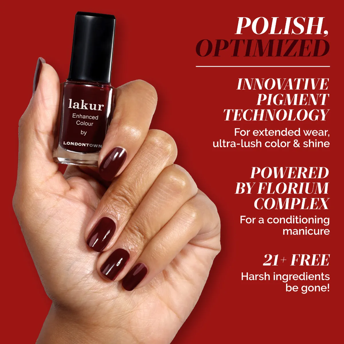 Luxusné laky na nechty Londontown lakur vyživujú a skrášľujú zároveň, pritom sú vysoko odolné, rýchlo schnú a majú takmer gélový lesk. Obsahujú Florium Complex®, starostlivo strážený rodinný recept – zmes botanických olejov a extraktov na posilnenie, hydratáciu a regeneráciu nechtov a pokožky. Laky na nechty lakur predstavujú prelomovú kombináciu intenzívnej farby a jedinečnej starostlivosti kur® – výsledok premysleného prístupu, ktorý spája to najlepšie z čistých ingrediencií a účinnej, profesionálnej technológie. Vyberte si clean beauty.