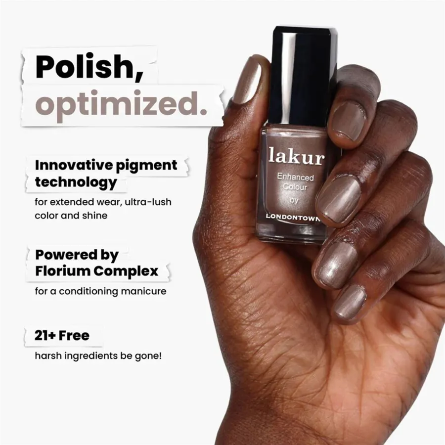 Luxusné laky na nechty Londontown lakur vyživujú a skrášľujú zároveň, pritom sú vysoko odolné, rýchlo schnú a majú takmer gélový lesk. Obsahujú Florium Complex®, starostlivo strážený rodinný recept – zmes botanických olejov a extraktov na posilnenie, hydratáciu a regeneráciu nechtov a pokožky. Laky na nechty lakur predstavujú prelomovú kombináciu intenzívnej farby a jedinečnej starostlivosti kur® – výsledok premysleného prístupu, ktorý spája to najlepšie z čistých ingrediencií a účinnej, profesionálnej technológie. Vyberte si clean beauty.