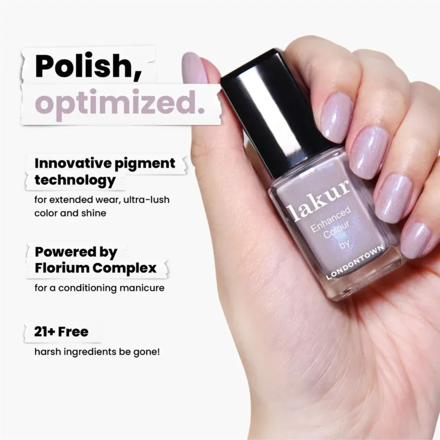 Luxusné laky na nechty Londontown lakur vyživujú a skrášľujú zároveň, pritom sú vysoko odolné, rýchlo schnú a majú takmer gélový lesk. Obsahujú Florium Complex®, starostlivo strážený rodinný recept – zmes botanických olejov a extraktov na posilnenie, hydratáciu a regeneráciu nechtov a pokožky. Laky na nechty lakur predstavujú prelomovú kombináciu intenzívnej farby a jedinečnej starostlivosti kur® – výsledok premysleného prístupu, ktorý spája to najlepšie z čistých ingrediencií a účinnej, profesionálnej technológie. Vyberte si clean beauty.