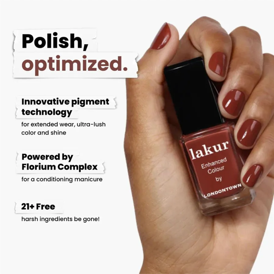Luxusné laky na nechty Londontown lakur vyživujú a skrášľujú zároveň, pritom sú vysoko odolné, rýchlo schnú a majú takmer gélový lesk. Obsahujú Florium Complex®, starostlivo strážený rodinný recept – zmes botanických olejov a extraktov na posilnenie, hydratáciu a regeneráciu nechtov a pokožky. Laky na nechty lakur predstavujú prelomovú kombináciu intenzívnej farby a jedinečnej starostlivosti kur® – výsledok premysleného prístupu, ktorý spája to najlepšie z čistých ingrediencií a účinnej, profesionálnej technológie. Vyberte si clean beauty.