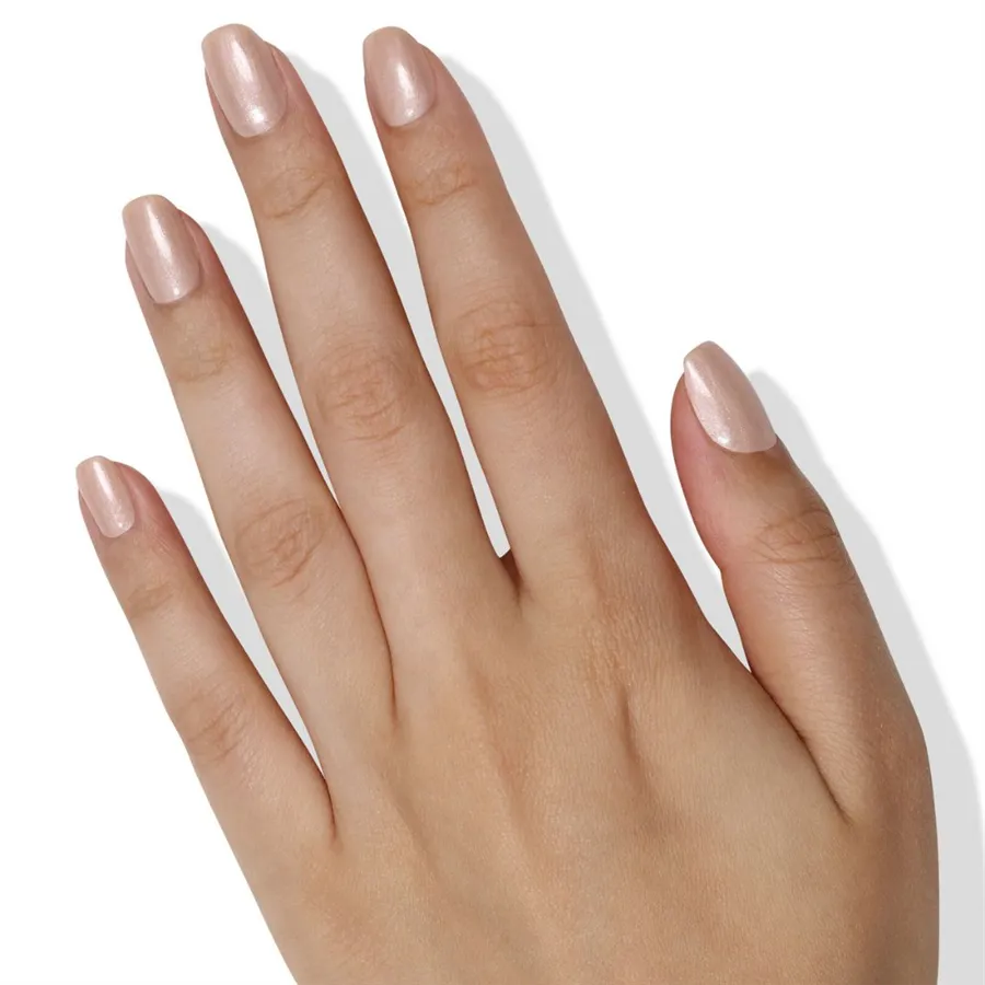 Lichotivý perlový odstín připomíná jemné třpytivé šampaňské, ideální na podzimní večer. Vysoce pigmentovaný a veganský.