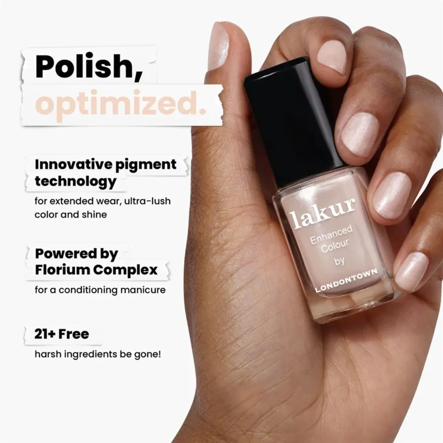Luxusné laky na nechty Londontown lakur vyživujú a skrášľujú zároveň, pritom sú vysoko odolné, rýchlo schnú a majú takmer gélový lesk. Obsahujú Florium Complex®, starostlivo strážený rodinný recept – zmes botanických olejov a extraktov na posilnenie, hydratáciu a regeneráciu nechtov a pokožky. Laky na nechty lakur predstavujú prelomovú kombináciu intenzívnej farby a jedinečnej starostlivosti kur® – výsledok premysleného prístupu, ktorý spája to najlepšie z čistých ingrediencií a účinnej, profesionálnej technológie. Vyberte si clean beauty.