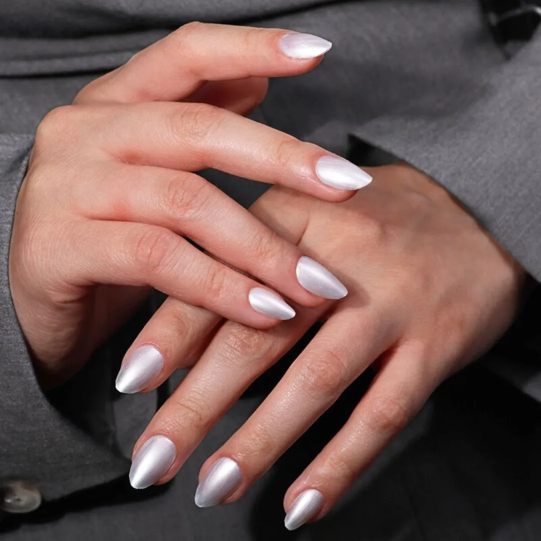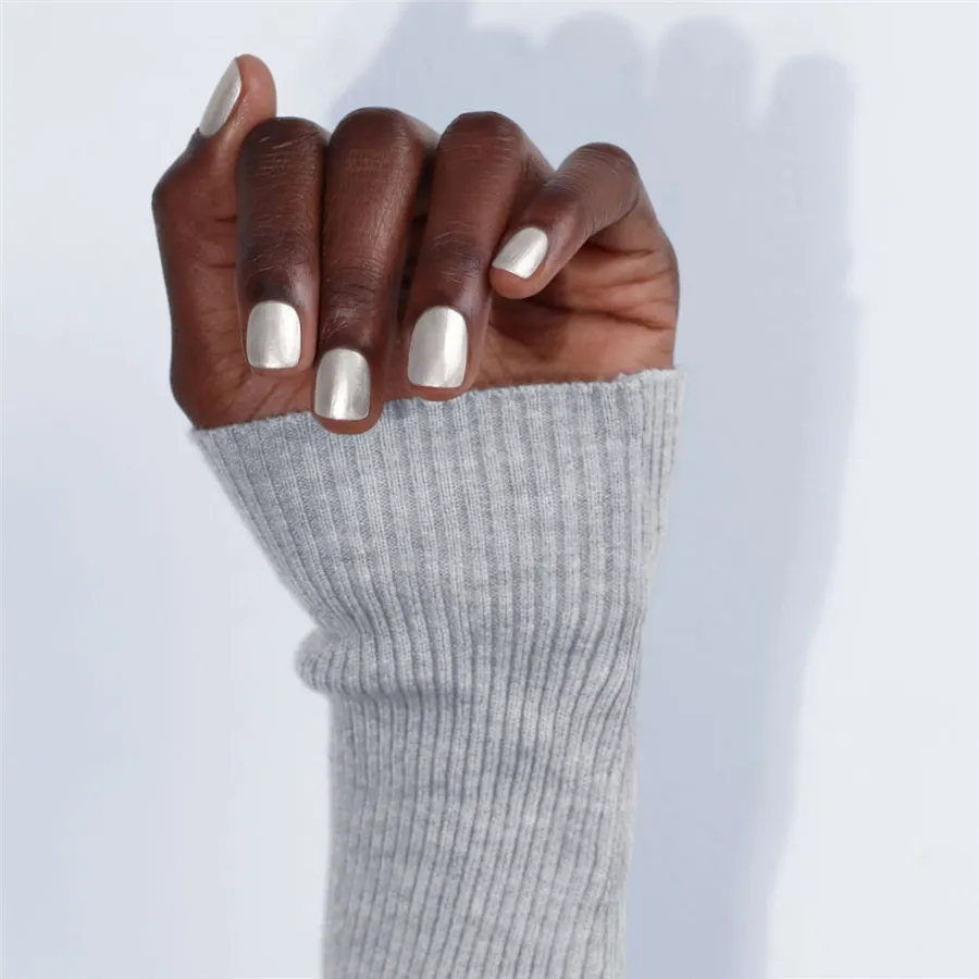 Chrómový lak na nechty v zasneženom, púdrovom odtieni inšpirovanom iskrivou zimou vás bude baviť. Vyživujúci a clean beauty.