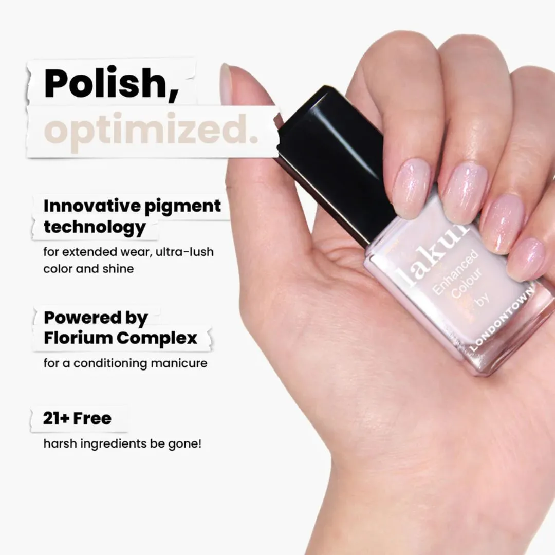 Luxusné laky na nechty Londontown lakur vyživujú a skrášľujú zároveň, pritom sú vysoko odolné, rýchlo schnú a majú takmer gélový lesk. Obsahujú Florium Complex®, starostlivo strážený rodinný recept – zmes botanických olejov a extraktov na posilnenie, hydratáciu a regeneráciu nechtov a pokožky. Laky na nechty lakur predstavujú prelomovú kombináciu intenzívnej farby a jedinečnej starostlivosti kur® – výsledok premysleného prístupu, ktorý spája to najlepšie z čistých ingrediencií a účinnej, profesionálnej technológie. Vyberte si clean beauty.