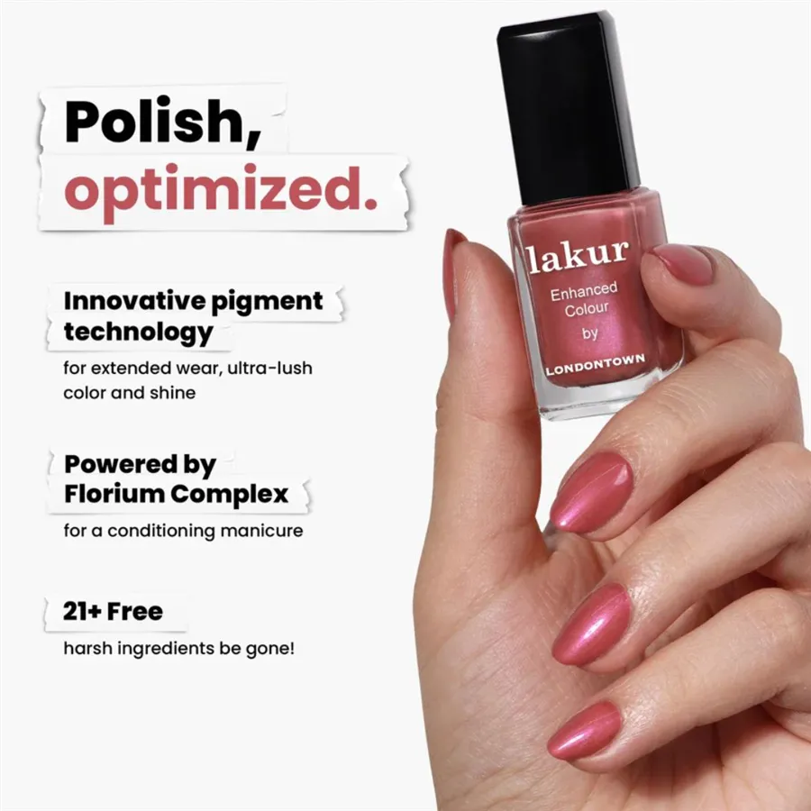 Luxusné laky na nechty Londontown lakur vyživujú a skrášľujú zároveň, pritom sú vysoko odolné, rýchlo schnú a majú takmer gélový lesk. Obsahujú Florium Complex®, starostlivo strážený rodinný recept – zmes botanických olejov a extraktov na posilnenie, hydratáciu a regeneráciu nechtov a pokožky. Laky na nechty lakur predstavujú prelomovú kombináciu intenzívnej farby a jedinečnej starostlivosti kur® – výsledok premysleného prístupu, ktorý spája to najlepšie z čistých ingrediencií a účinnej, profesionálnej technológie. Vyberte si clean beauty.