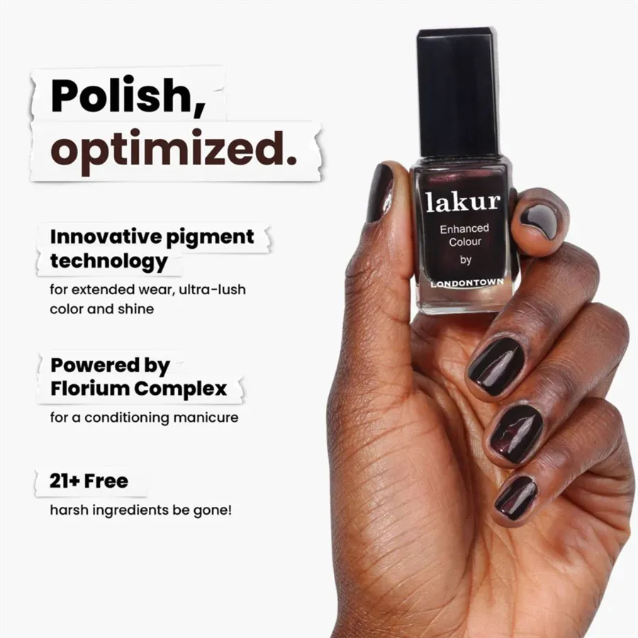 Luxusné laky na nechty Londontown lakur vyživujú a skrášľujú zároveň, pritom sú vysoko odolné, rýchlo schnú a majú takmer gélový lesk. Obsahujú Florium Complex®, starostlivo strážený rodinný recept – zmes botanických olejov a extraktov na posilnenie, hydratáciu a regeneráciu nechtov a pokožky. Laky na nechty lakur predstavujú prelomovú kombináciu intenzívnej farby a jedinečnej starostlivosti kur® – výsledok premysleného prístupu, ktorý spája to najlepšie z čistých ingrediencií a účinnej, profesionálnej technológie. Vyberte si clean beauty.