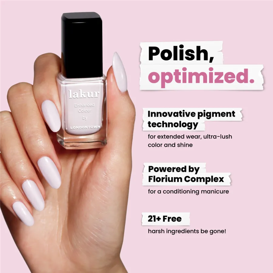 Luxusné laky na nechty Londontown lakur vyživujú a skrášľujú zároveň, pritom sú vysoko odolné, rýchlo schnú a majú takmer gélový lesk. Obsahujú Florium Complex®, starostlivo strážený rodinný recept – zmes botanických olejov a extraktov na posilnenie, hydratáciu a regeneráciu nechtov a pokožky. Laky na nechty lakur predstavujú prelomovú kombináciu intenzívnej farby a jedinečnej starostlivosti kur® – výsledok premysleného prístupu, ktorý spája to najlepšie z čistých ingrediencií a účinnej, profesionálnej technológie. Vyberte si clean beauty.