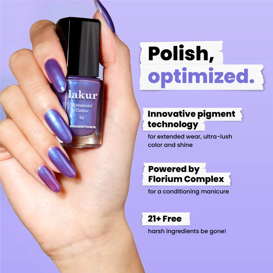 Luxusné laky na nechty Londontown lakur vyživujú a skrášľujú zároveň, pritom sú vysoko odolné, rýchlo schnú a majú takmer gélový lesk. Obsahujú Florium Complex®, starostlivo strážený rodinný recept – zmes botanických olejov a extraktov na posilnenie, hydratáciu a regeneráciu nechtov a pokožky. Laky na nechty lakur predstavujú prelomovú kombináciu intenzívnej farby a jedinečnej starostlivosti kur® – výsledok premysleného prístupu, ktorý spája to najlepšie z čistých ingrediencií a účinnej, profesionálnej technológie. Vyberte si clean beauty.