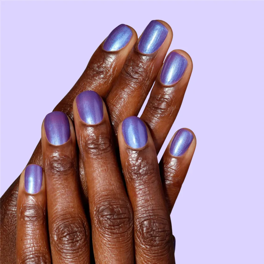 Lak na nechty vo fialkovom odtieni s modrými trblietkami inšpirovaný letným sorbetom dodá vašej manikúre nádych spontánnosti. Clean beauty.