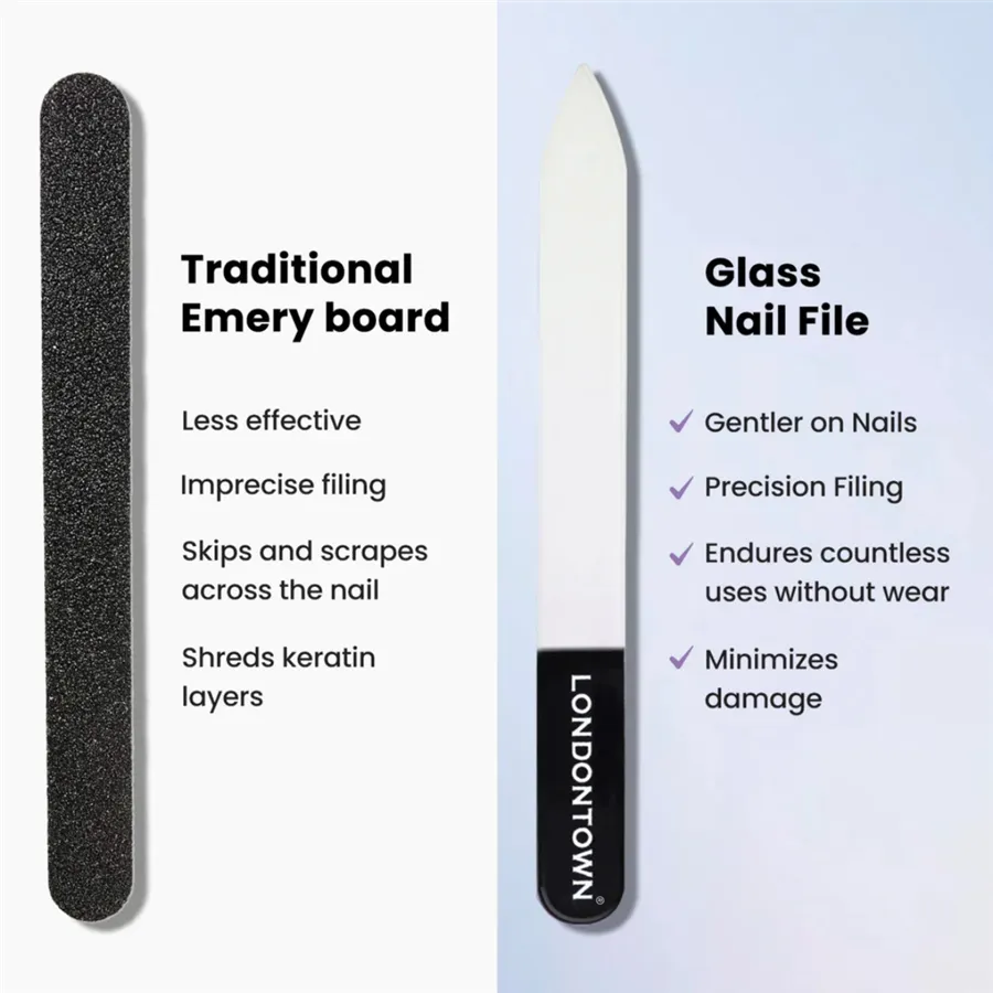 Obojstranný pilník z krištáľového skla má trvalo vyryté ideálne zrno, aby bez námahy tvaroval tvrdé nechty a zároveň jemne upravoval krehké nechty bez poškodenia. Vaše nechty budú hladké a ich povrch jednotný, čo pomáha predchádzať štiepeniu a lámaniu. Je vhodný pre všetky typy nechtov vrátane jemných a umelých. Tento nevyhnutný doplnok manikúry je takou zmenou, že si ho budete chcieť zadovážiť hneď niekoľkokrát.