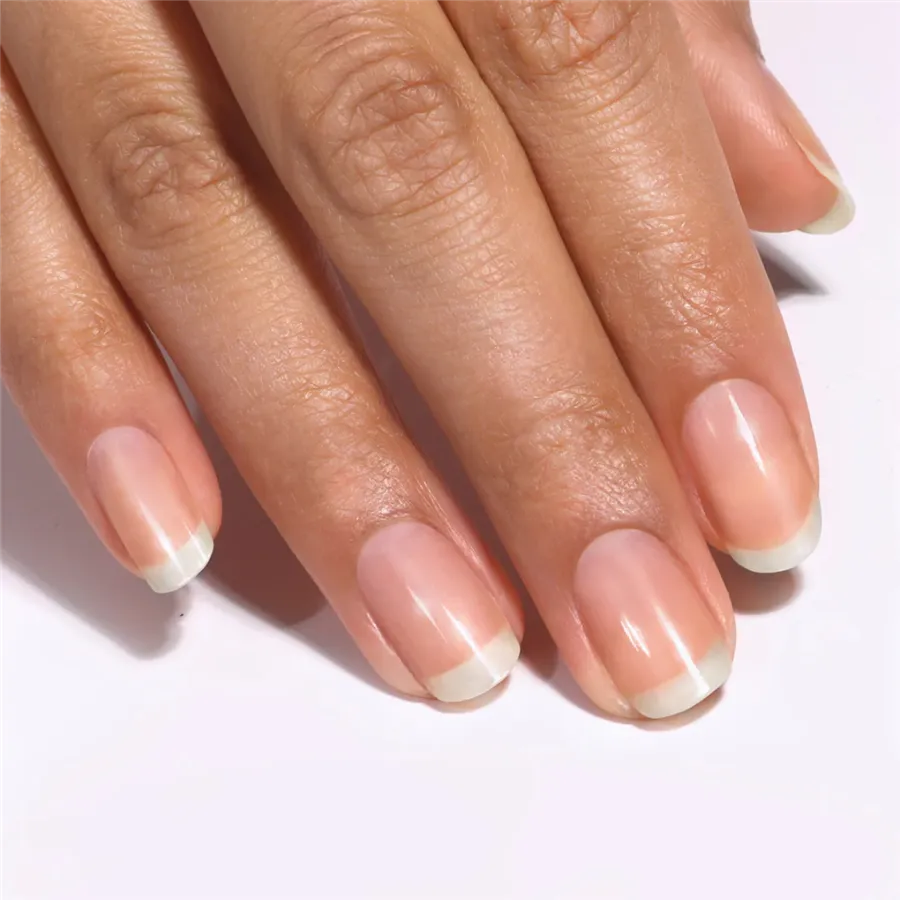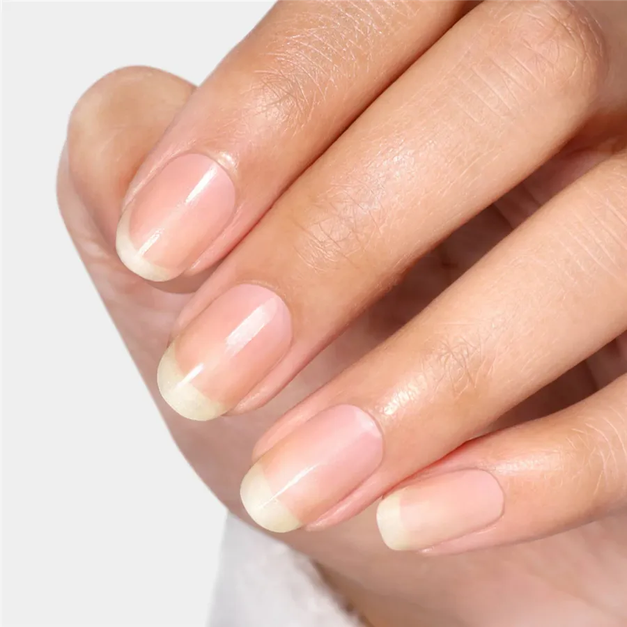 1) Vyhladenie nechtov: Jemne masírujte drsnejšou stranou každý necht pohybom tam a späť. Používajte rovnomerný tlak, aby ste predišli prebrúseniu.