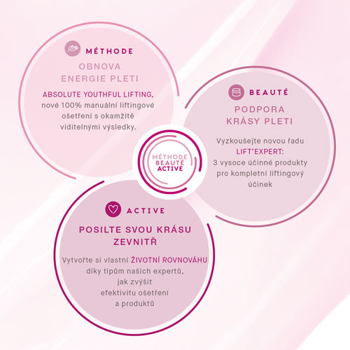 Absolutně omlazujicí liftingové ošetření pleti Lift Expert Maria Galland100% manuální masáž kombinuje hloubkové klouzavé anti-aging tahy s intenzivními tahy petrissage. Tyto speciální tahy jsou založeny na hnětení a rolování hlubokých svalů, které okamžitě pozvednou, zpevní a načechrají pleť. Masáž stimuluje buněčnou aktivitu. Zároveň relaxační rituály pomáhají redukovat stres, obnovují energii a resetují mysl a tělo.