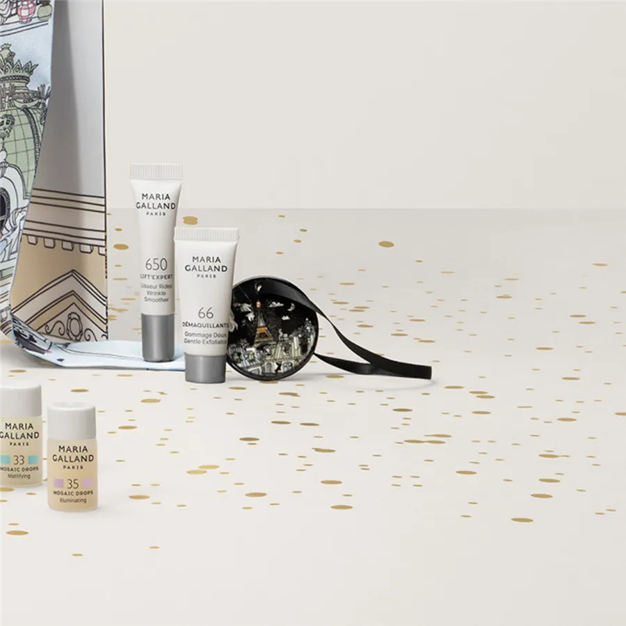Za každým z nich sa skrýva jedinečný darček starostlivosti od Maria Galland Paris, ktorý vás pozýva prijať odvážnu eleganciu sviatočnej sezóny: cestovné veľkosti, vzorky, 4 darčeky vybrané Maria Galland Paris a dokonca aj niektoré originálne veľkosti.