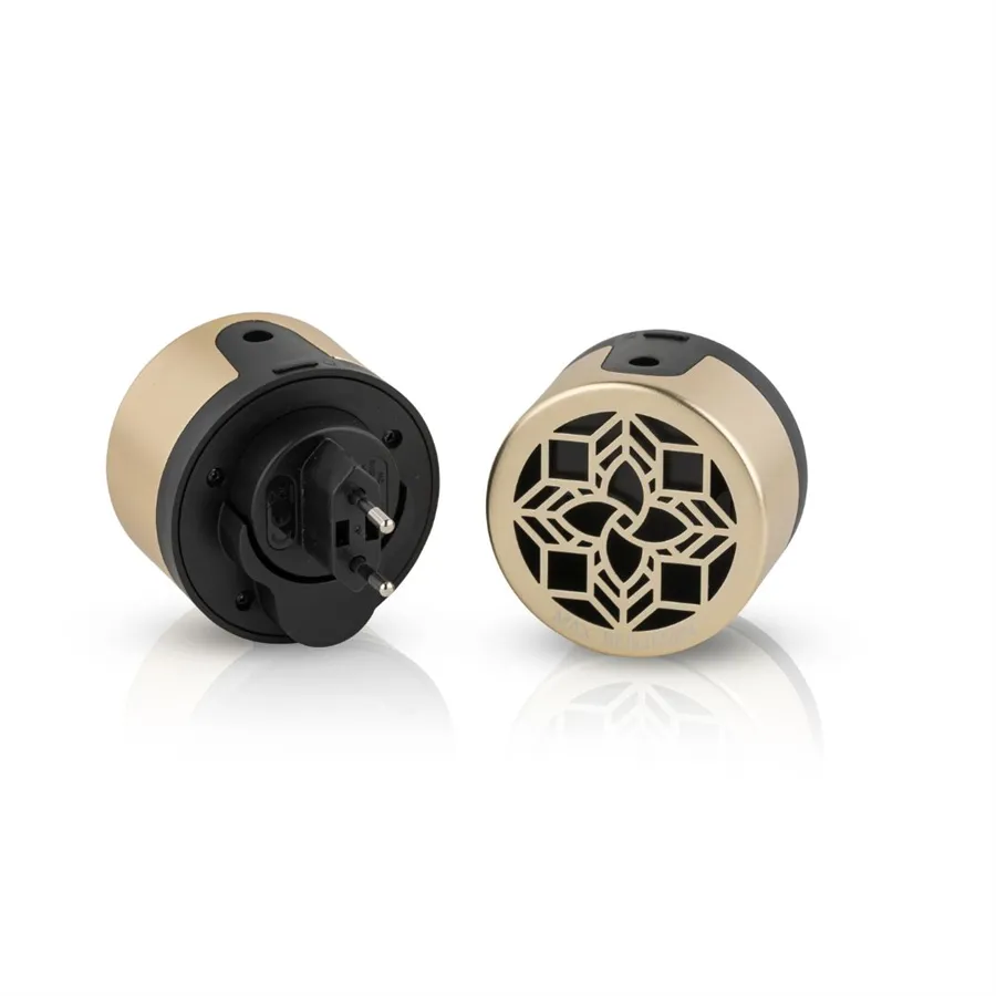 Použitie: 1. Odskrutkujte viečko z fľaštičky s náplňou. 2. Zložte predný zlatý kryt difuzéra. 3. Opatrne vložte fľaštičku s vonným olejom do zadnej časti zariadenia, kým nezaklapne, a nasaďte kryt. 4. Zasuňte zariadenie do zásuvky a stlačte tlačidlo hore pre spustenie vône. Počkajte približne 30 minút, kým sa vôňa začne šíriť. Zapínajte alebo vypínajte podľa potreby.