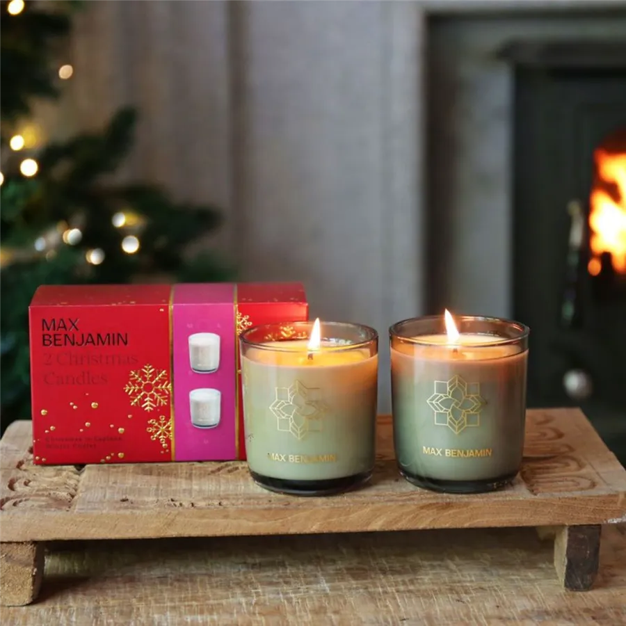 Set obsahuje dve sviečky s hmotnosťou 210 g so sviatočnými vôňami: