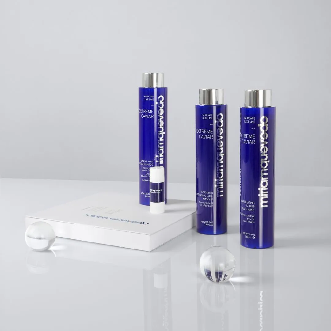 Extreme Caviar Special Hair Loss Shampoo je intenzívna starostlivosť určená na boj proti vypadávaniu vlasov a na stimuláciu ich rastu. Využíva pokročilé biotechnológie a luxusné ingrediencie na posilnenie vlasových folikulov, zlepšenie mikrocirkulácie pokožky hlavy a ochranu vlasového vlákna pred starnutím a poškodením. Je obohatený o 8 multivitamínov a 5 stopových prvkov, ktoré pomáhajú inhibovať tvorbu DHT – hlavnej príčiny vypadávania vlasov. Zároveň reguluje činnosť mazových žliaz a poskytuje antiseptické účinky, ktoré podporujú zdravý rast vlasov. Účinnosť svojich produktov kontroluje Miriam Quevedo vo vlastných laboratóriách.