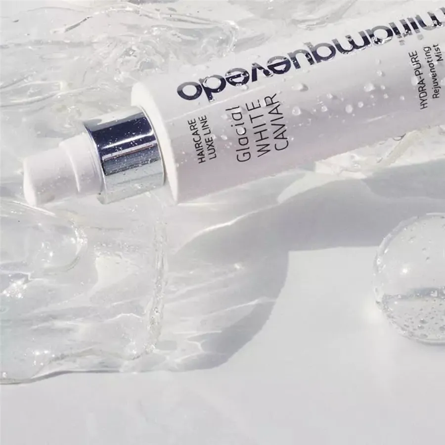 Glacial White Caviar Hydra‑Pure Rejuvenating Mist je výživná anti‑aging hmla s extraktom z bieleho kaviáru. Vďaka komplexu proteínov a štrukturálnych peptidov, ktoré sa okamžite vstrebávajú do vlasov a vlasovej pokožky, chráni pred škodlivými účinkami UV žiarenia, chemických úprav, farbenia či stylingu horúcimi nástrojmi a zároveň proti nim aktívne bojuje. Vaše vlasy budú jemné a plné života vďaka 24-hodinovému hydratačnému účinku. Upokojuje pokožku hlavy a obnovuje jej prirodzený ekosystém, rovnováhu mikroflóry a pôsobí proti nepríjemným prejavom ako je suchosť, šupinatenie, svrbenie a podráždenie. Má antibakteriálne a protizápalové účinky.