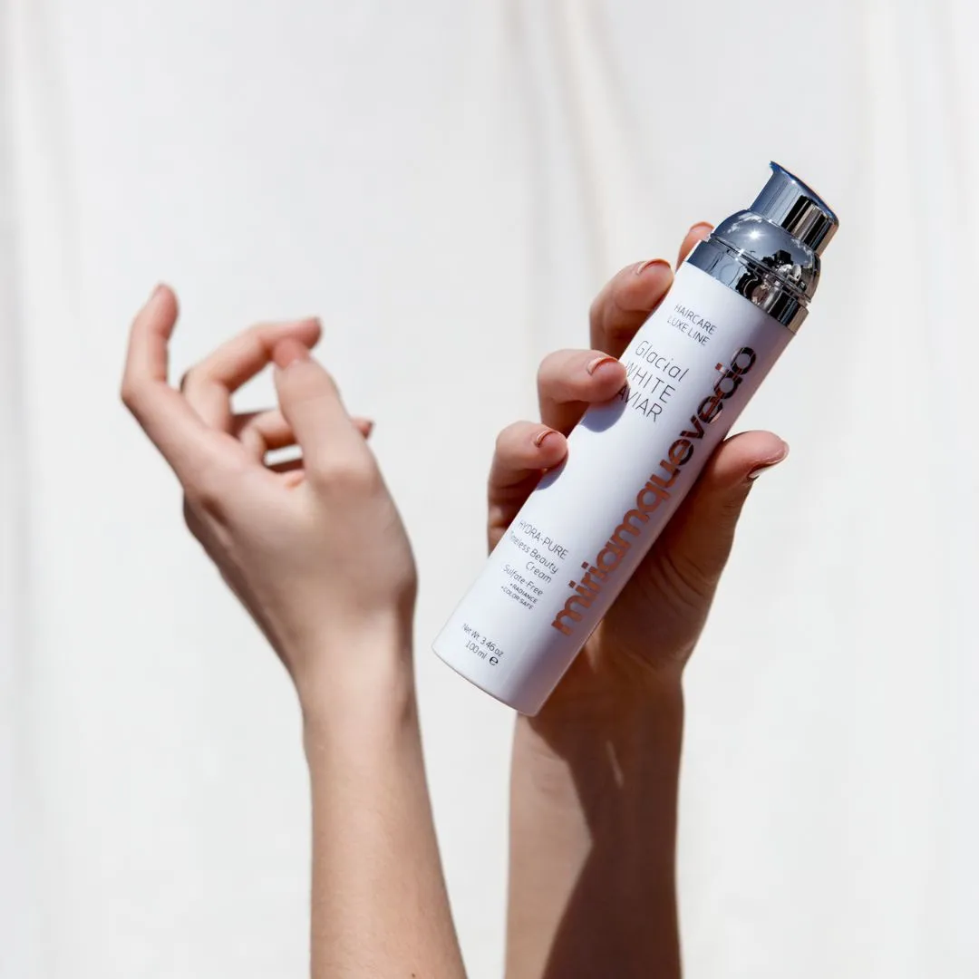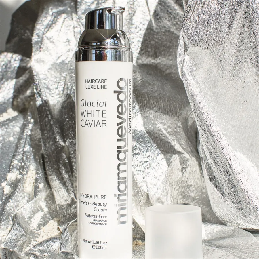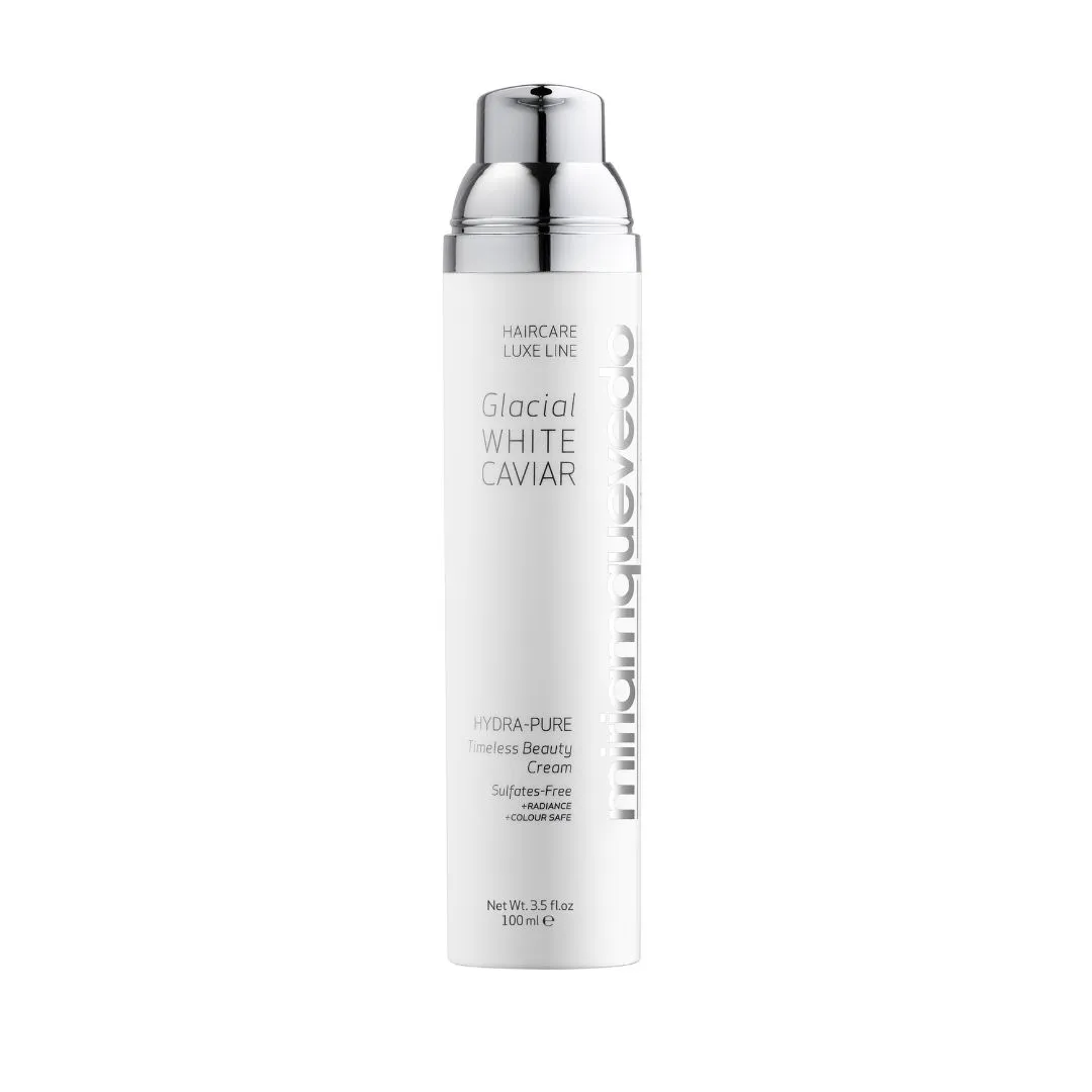 Hydra-Pure Timeless Beauty Cream z línie Glacial White Caviar je multifunkčný stylingový krém s extraktom z bieleho kaviáru, kapsulovanou ľadovcovou vodou a systémom keratínovej ochrany a obnovy. Funguje ako vysoko účinné vlasové sérum v krémovej textúre. Hĺbkovo regeneruje, hydratuje a transformuje poškodené vlasy. Chráni pred vyblednutím farby a dehydratáciou spôsobenou teplom, fotostarnutím alebo chemikáliami. Vzácne drahokamy odrážajú vlastné svetlo a dodávajú vlasom brilantný lesk. Vaše vlasy budú hodvábne jemné a bez krepovatenia.