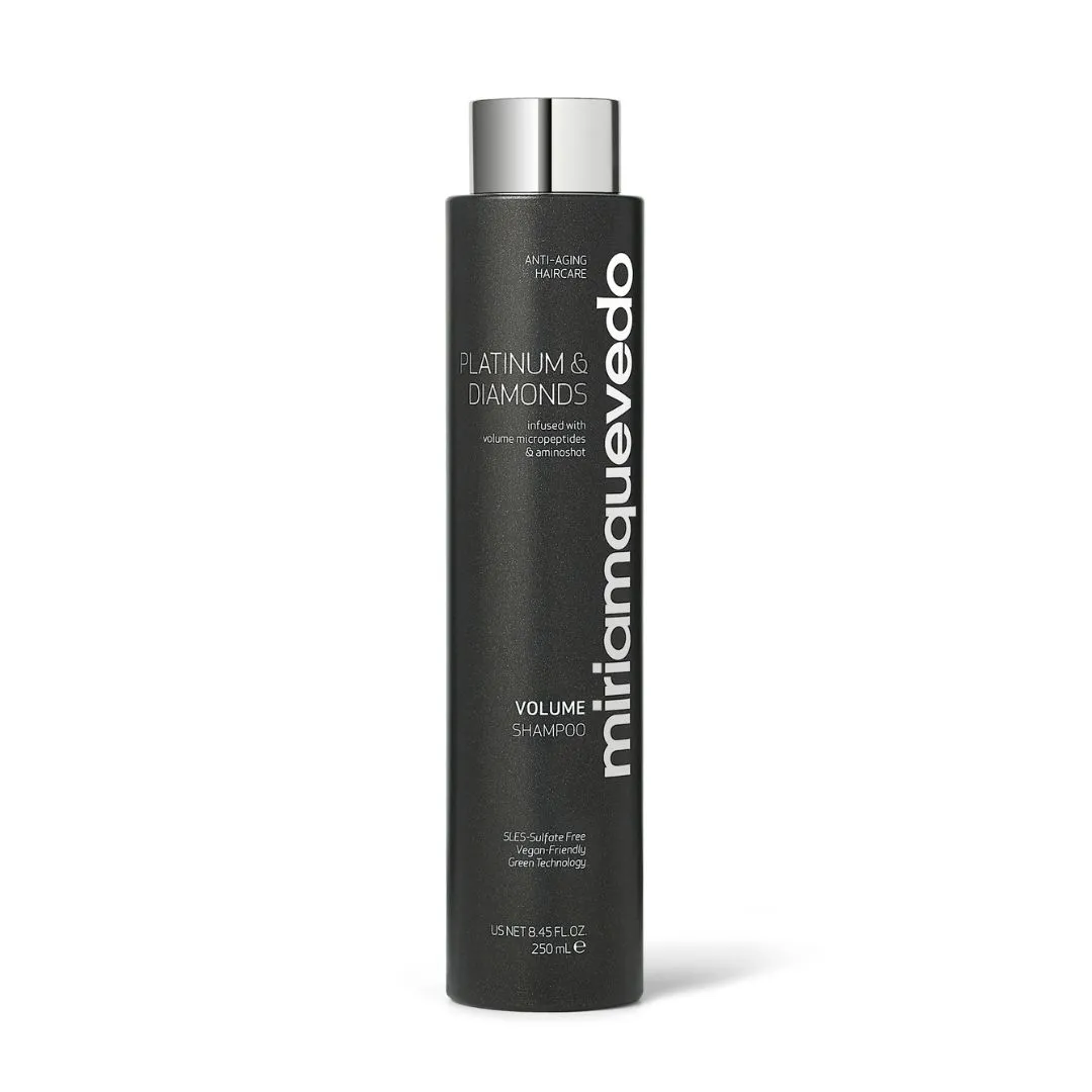 Platinum & Diamonds Volume Shampoo od Miriam Quevedo je dokonalou odpoveďou na potreby jemných a zvesených vlasov bez života. Tento objemový šampón nielen čistí, ale zároveň transformuje vlasy pomocou inovatívnych technológií a vysoko účinných zložiek. Jemným vlasom prináša dramatický objem, extrémne hodvábnu textúru a diamantový lesk. Obsahuje 29 vzácnych aktívnych látok, z ktorých 45 % má biotechnologický pôvod. Obnovuje objem zvnútra vlasového vlákna aj zvonku. Vlasovej pokožke a vlasom zároveň poskytuje anti-aging starostlivosť – hydratuje, omladzuje a chráni vlasy so zreteľom na ich zdravie. Vyrovnáva mikroflóru a hydrolipidovú ochrannú bariéru pokožky hlavy.