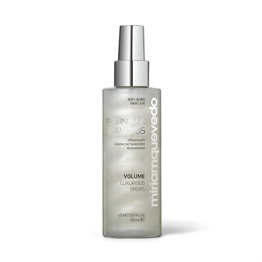 Miriam Quevedo8435590603171MQ113100388RRI000101Jemná bezoplachová hmla dodáva vlasom objem, chráni ich a rozjasňuje vďaka diamantovému a platinovému prášku. Pokročilá anti-age starostlivosť o vlasy
