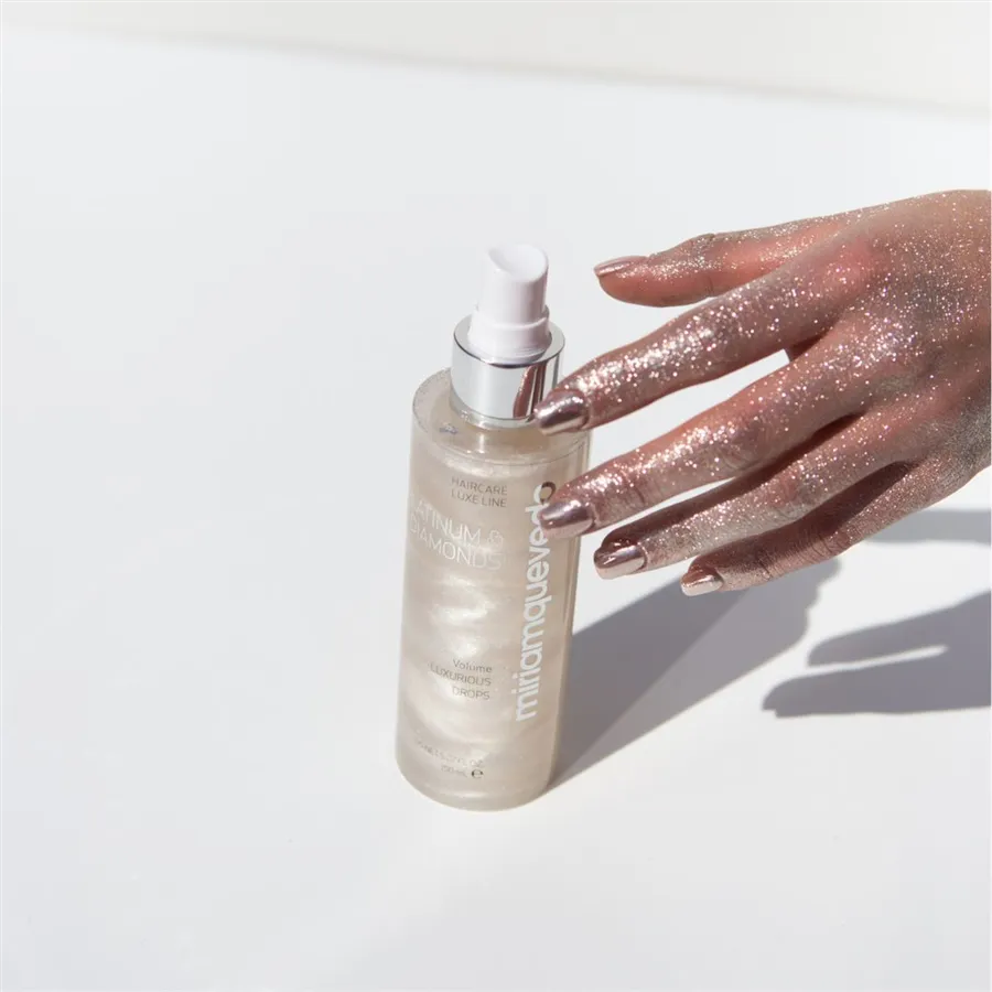 Platinum & Diamonds Volume Luxurious Drops je luxusný záverečný objemový sprej, ktorý dodáva jemným vlasom ultra objem a extrémne hodvábny pocit. Zväčšuje hrúbku a priemer každého vlasového vlákna, vyrovnáva a podporuje elektrostatické náboje vlasov. Je nabitý 10 vzácnymi aktívnymi zložkami. Poskytuje dlhotrvajúcu ochranu farby pred UV žiarením, zabezpečuje nepretržitú hydratáciu, obnovuje elasticitu a prirodzený lesk vlasov. Jemná hmla pôsobí proti starnutiu vlasov, hydratuje a revitalizuje vašu hrivu. Vlasy získavajú platinové odlesky, diamantový lesk a elegantnú vôňu.
