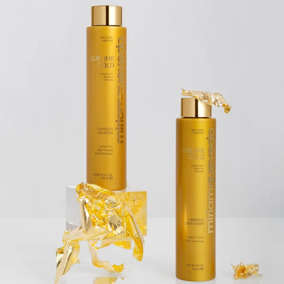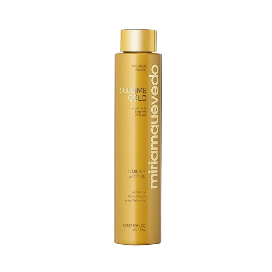 Objavte šampón, ktorý prináša viac než len každodenné čistenie. Miriam Quevedo Sublime Gold Luminous Shampoo je luxusný rituál s omladzujúcim účinkom. Spája bioaktívne 24-karátové zlato, kmeňové bunky divokého olivovníka a nektár s vitamínom D. Hĺbkovo vyživuje bez zaťaženia a pomáha regenerovať jadro vlasového vlákna aj pokožku hlavy. Pôsobí ako štít proti známkam starnutia, chráni farbu a vnáša vlasom novú mladistvosť a vitalitu. Vďaka pokročilej technológii a výnimočným prírodným zložkám premení vaše vlasy na žiarivú korunu krásy.