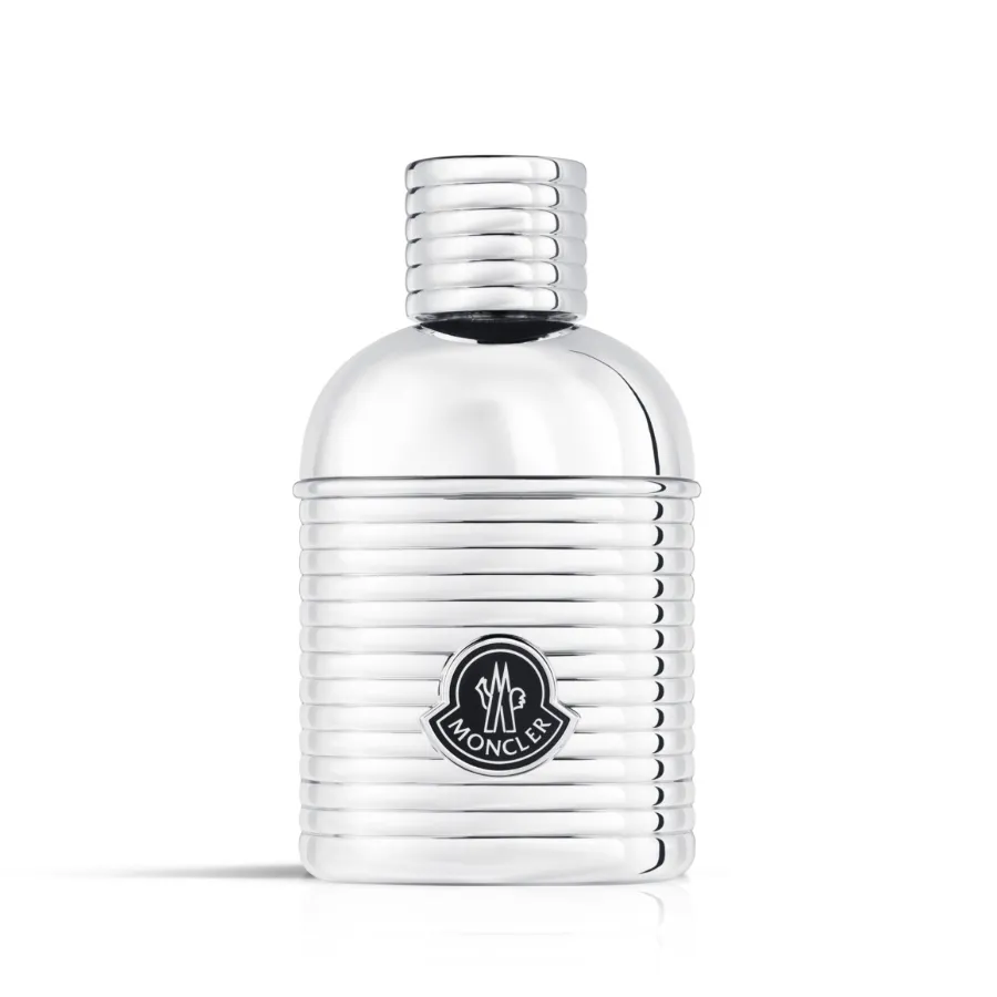 Flakón v rovných líniách má odvážny strieborný efekt a jemne zakrivený design do tvaru "borraccia". Je obklopený rebrovaným strieborným puzdrom a uzáverom. Flakón je zabalený v prémiovej matnej krabičke s ikonickým logom Moncler a s charakteristickou nášivkou "feltrino", ktorá pripomíná nášivku na páperových bundách Moncler.