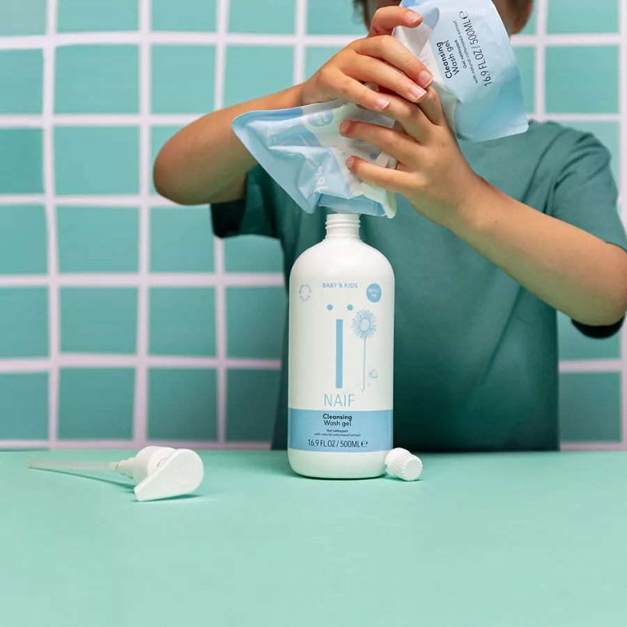 Čisticí a mycí gel pro děti a miminka je přítelem cákání. Jemně čistí a pečuje o pokožku vašich malých lásek bez podráždění. Dětská pokožka má od narození svoji přirozenou ochrannou vrstvu. Aby se nenarušila, vyrobil NAÏF velmi jemný mycí gel bez obsahu mýdla.