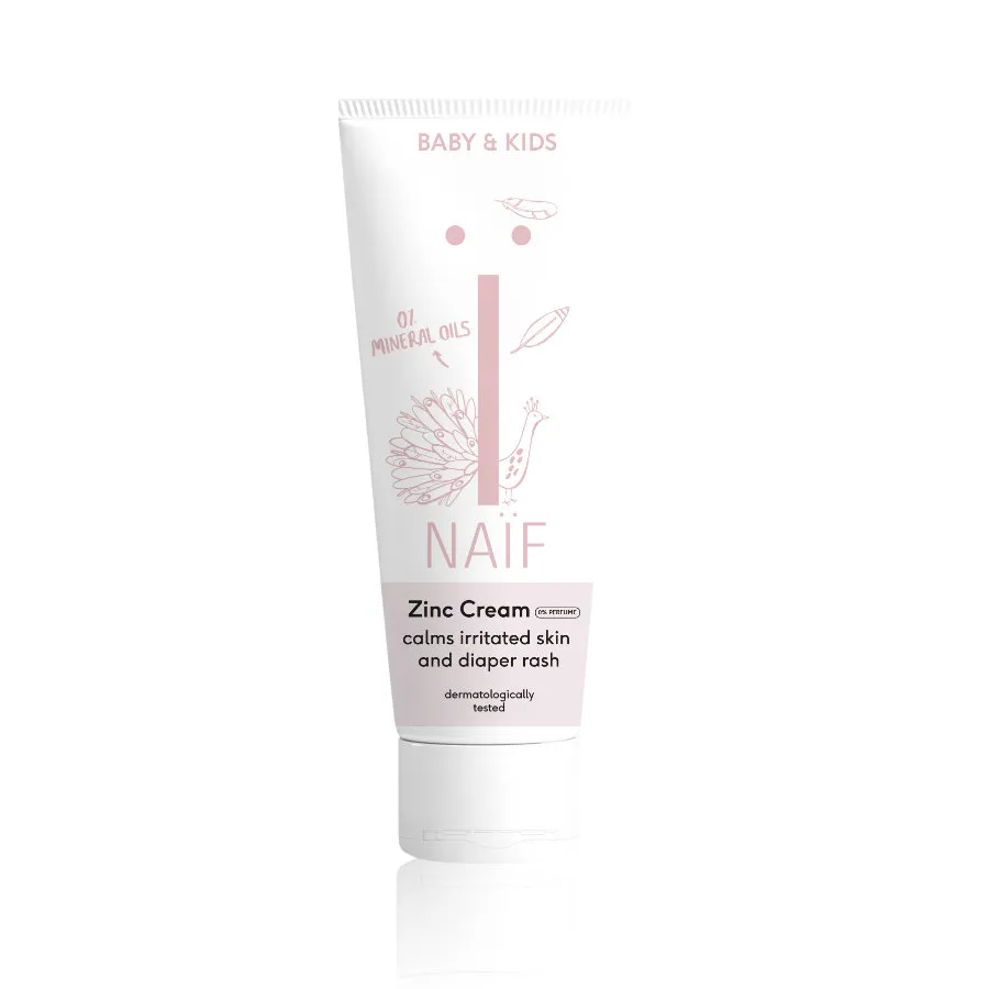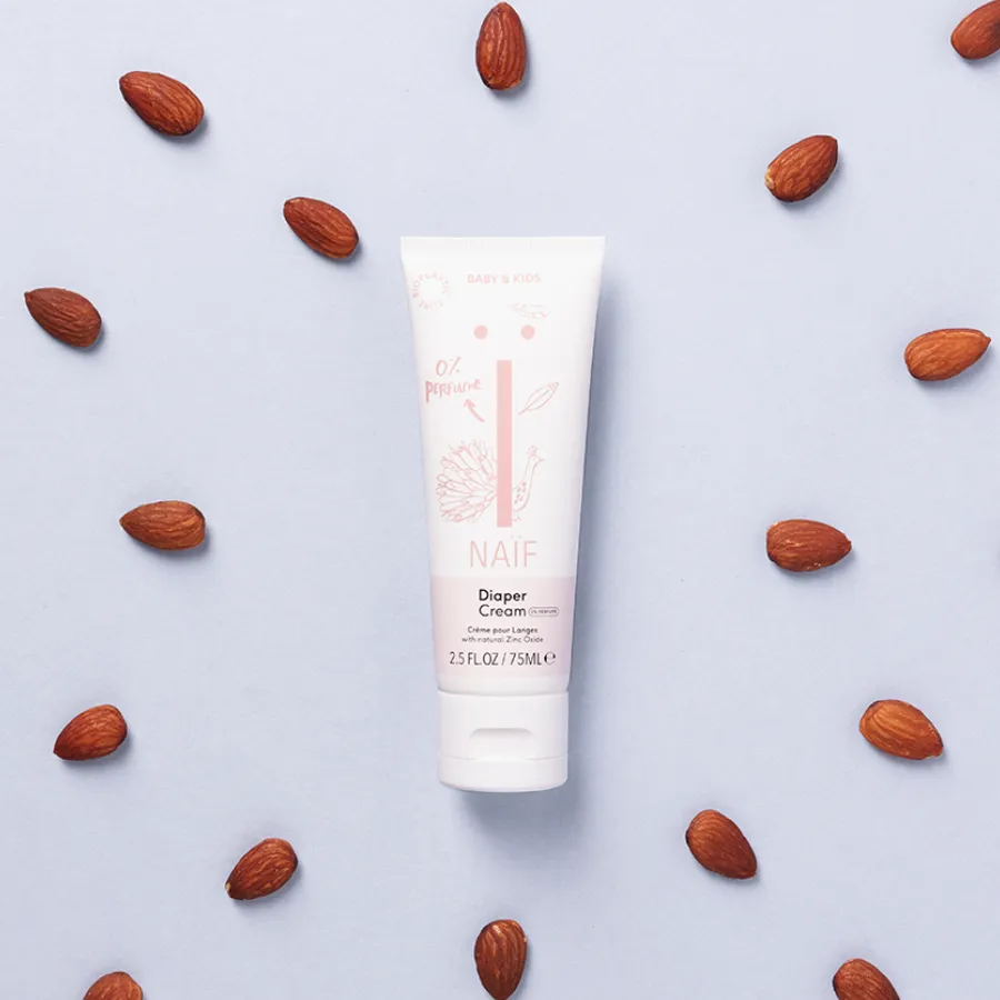 Prírodný Krém na zapareniny Naif (Diaper Cream Perfume Free) pre deti a bábätká obsahuje oxid zinočnatý, ktorý upokojuje, redukuje začervenanie a hojí plienkovú dermatitídu. Ďalej obsahuje prírodné ingrediencie ako je vitamín E, harmanček a prírodné oleje - zo sladkých mandlí, avokádový, slnečnicový, makadamiový a olej zo semien bavlníka. Tieto prírodné oleje zmierňujú podráždenie, vyživujú a obnovujú pokožku. Verzia bez parfumácie obsahuje viac horčíka. Je vo forme síranu horečnatého (Magnesium Sulfate). Vďaka tomu má krém ešte o niečo hutnejšiu textúru, ktorá vytvára na pokožke ochrannú vrstvu a chráni ju pred podráždením. Tento krém môžete použiť lokálne na podráždenú pokožku kdekoľvek na tele. Osvedčil sa i ako veľký pomocník pri hojení ložísk atopického ekzému. Dokáže tiež urýchliť hojenie akné, drobných raniek a popálenín. Zmierňuje podráždenie pokožky po holení.